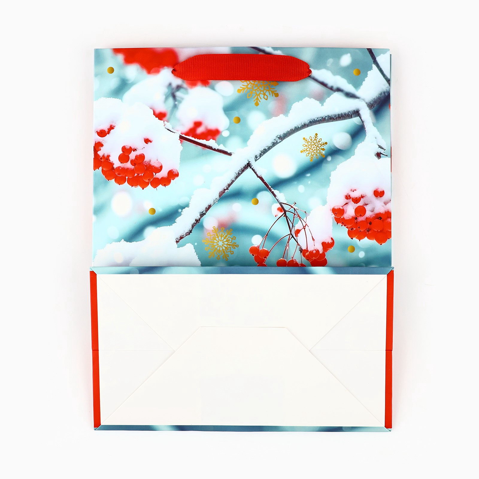 Пакет подарочный новогодний ламинированный "Рябина", MS 23 x 18 x 10 см, 18x23x10 см., Дарите Счастье, Китай