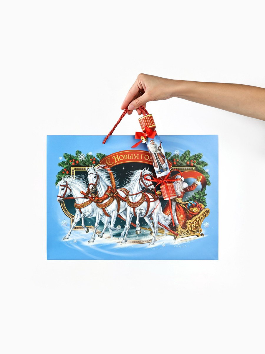 Пакет подарочный новогодний с коробкой-конфетой "Новый год 2026", лошадь 31x11x40 см, 31x40x14 см., Дарите Счастье, Китай
