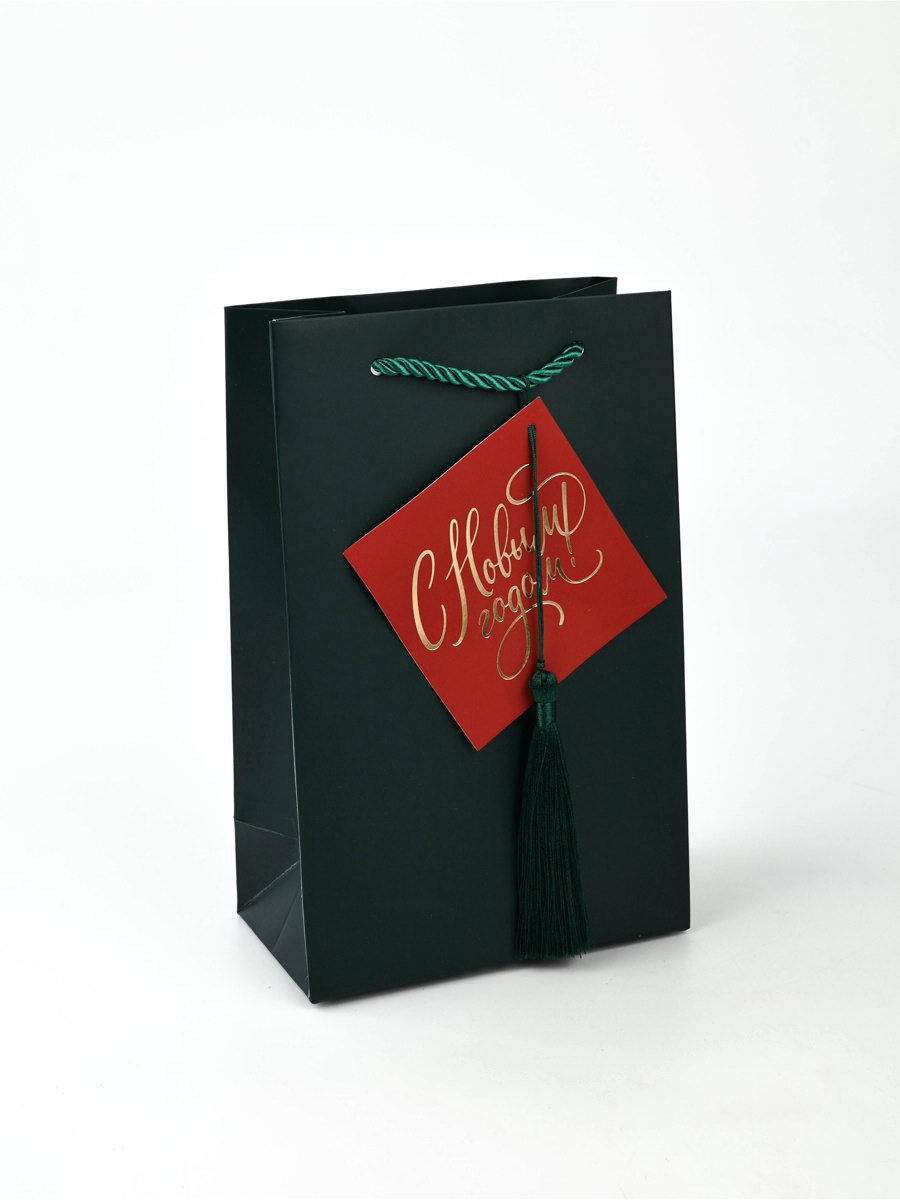 Пакет подарочный "Новогодний сюрприз", с шильдиком и бахромой, 18 x 23 x 11 см, 18x23x10 см., Дарите Счастье, Китай