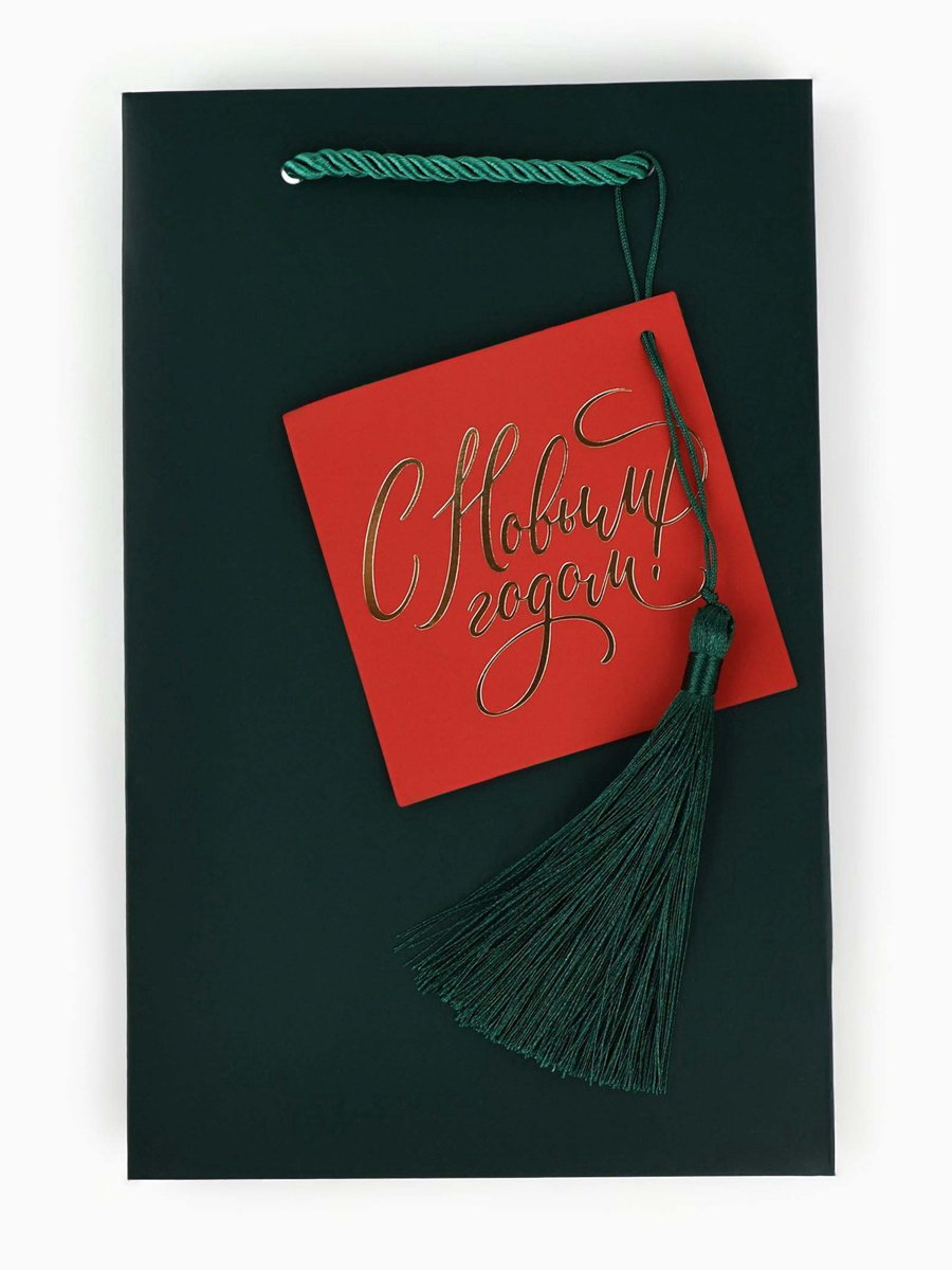 Пакет подарочный "Новогодний сюрприз", шильдик с тиснением, бахрома, 18x23x11 см, 18x23x10 см., Дарите Счастье, Китай