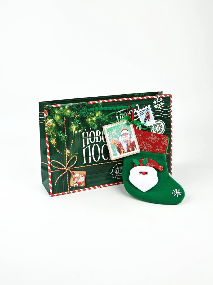 Пакет подарочный "Новогодний подарок", с носком для подарков, 25.5 x 30 x 11 см, 26x32x12 см., Дарите Счастье, Китай
