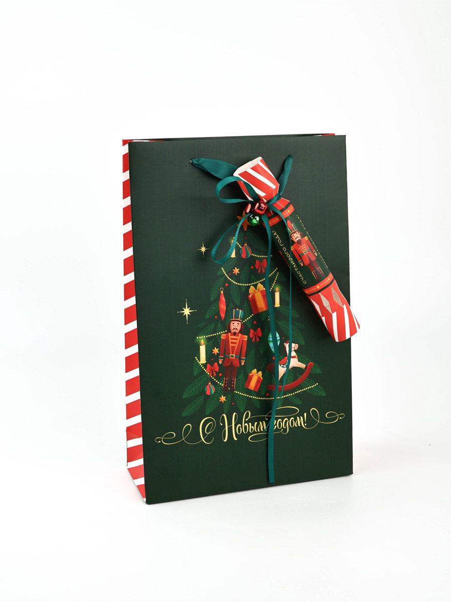 Пакет "Новогодний сюрприз", с металлическим декором и коробкой-конфета, 25.5 x 9 x 30 см, 26x32x12 см., Дарите Счастье, Китай