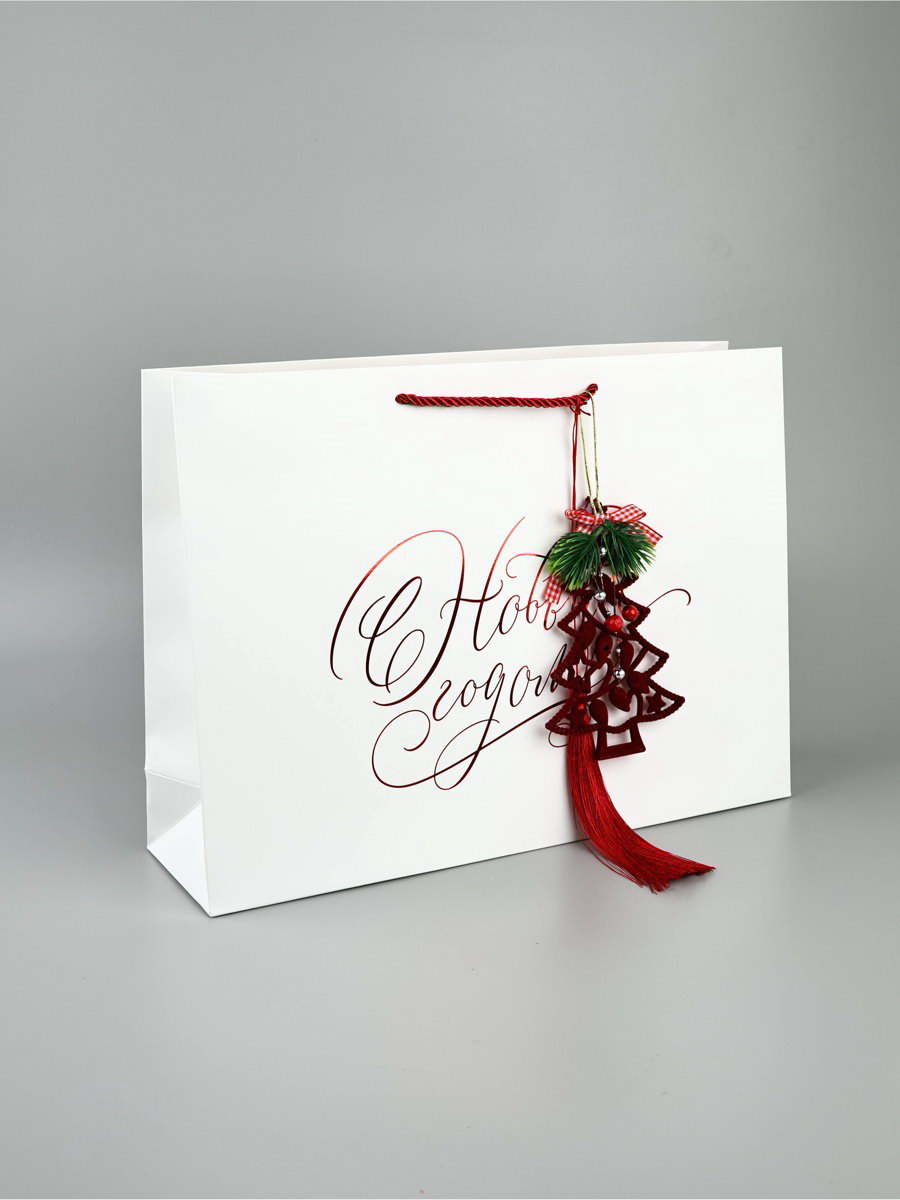 Пакет подарочный "Новогодний", с бубенчиками и кисточкой, 40 x 31 x 11 см, 31x40x14 см., Дарите Счастье, Китай