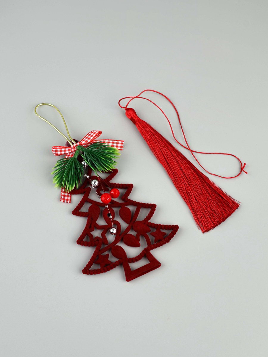 Пакет подарочный "Новогодний", тиснение, с ёлочной игрушкой и бахромой, 40x31x11 см, 31x40x14 см., Дарите Счастье, Китай