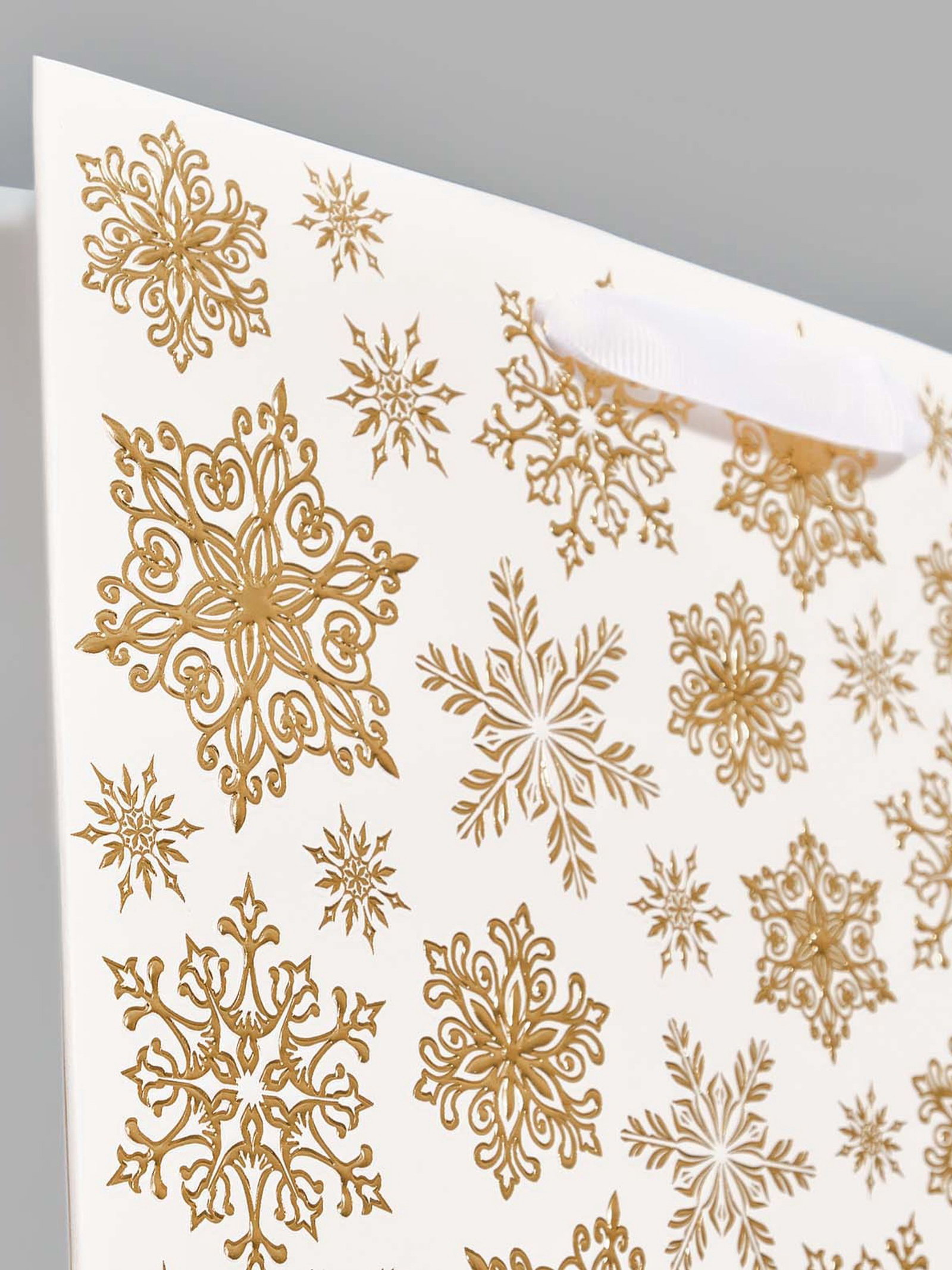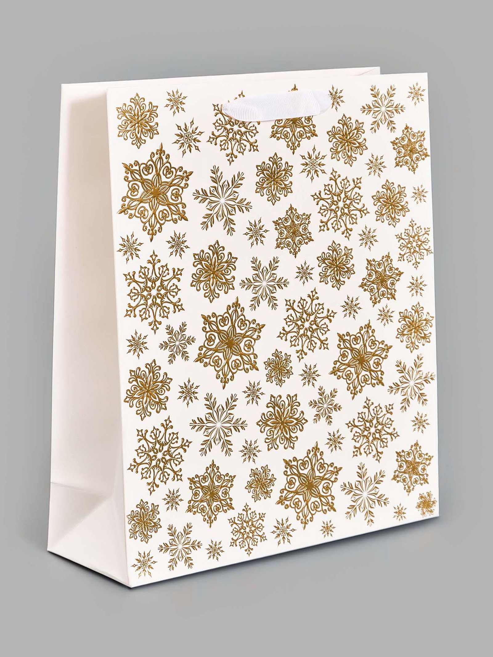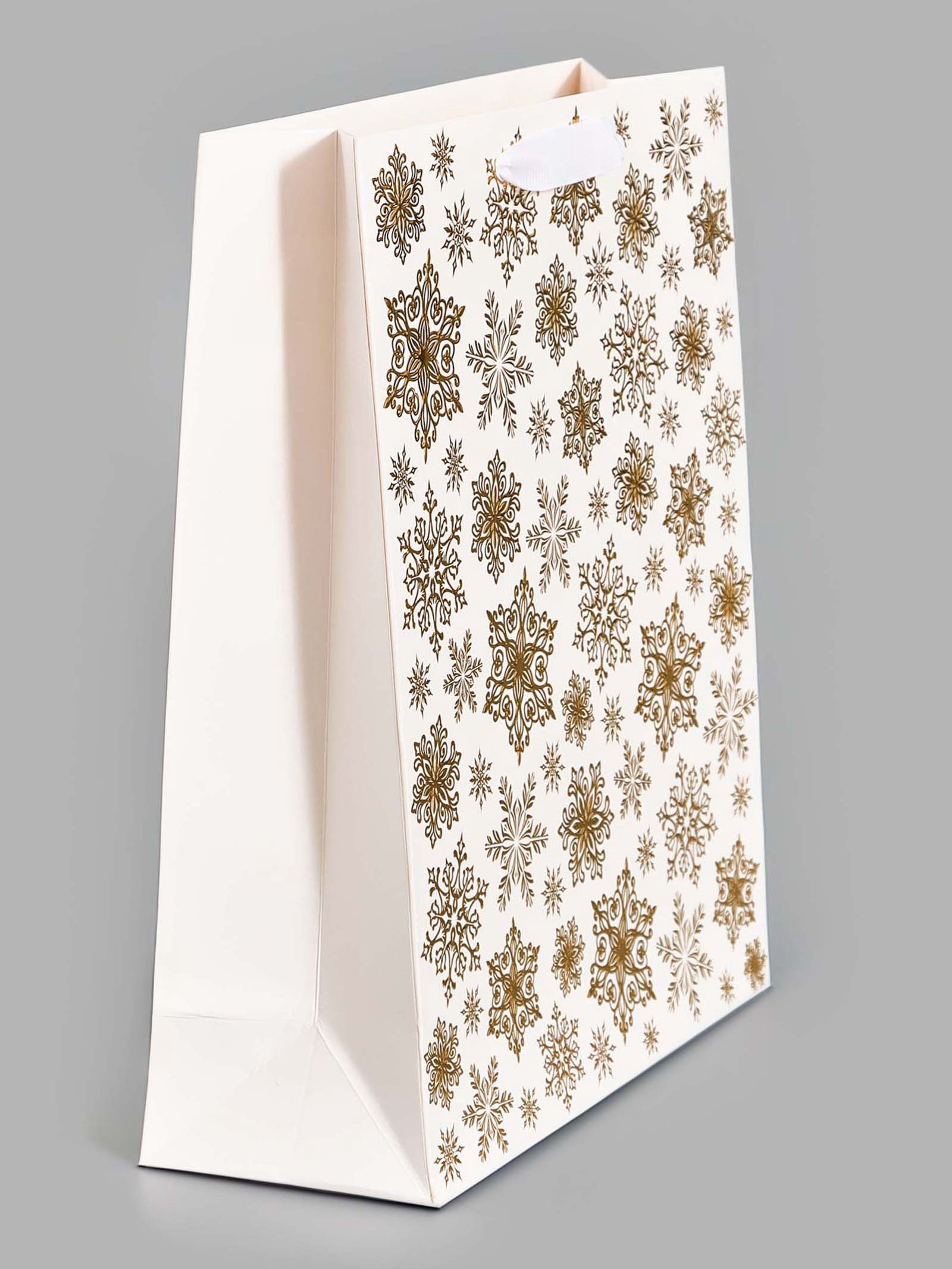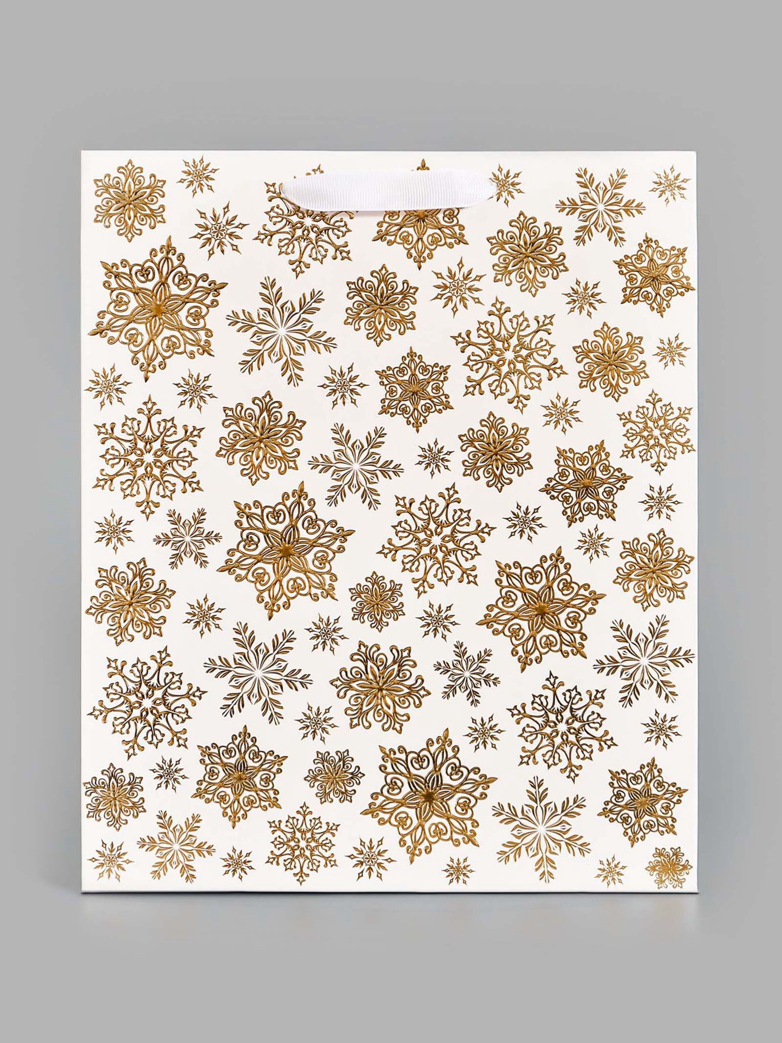 Пакет подарочный "Новогодние снежинки", 32x26x10 см, тиснение, конгрев, 3D-эффект, 26x32x10 см., Дарите Счастье, Китай