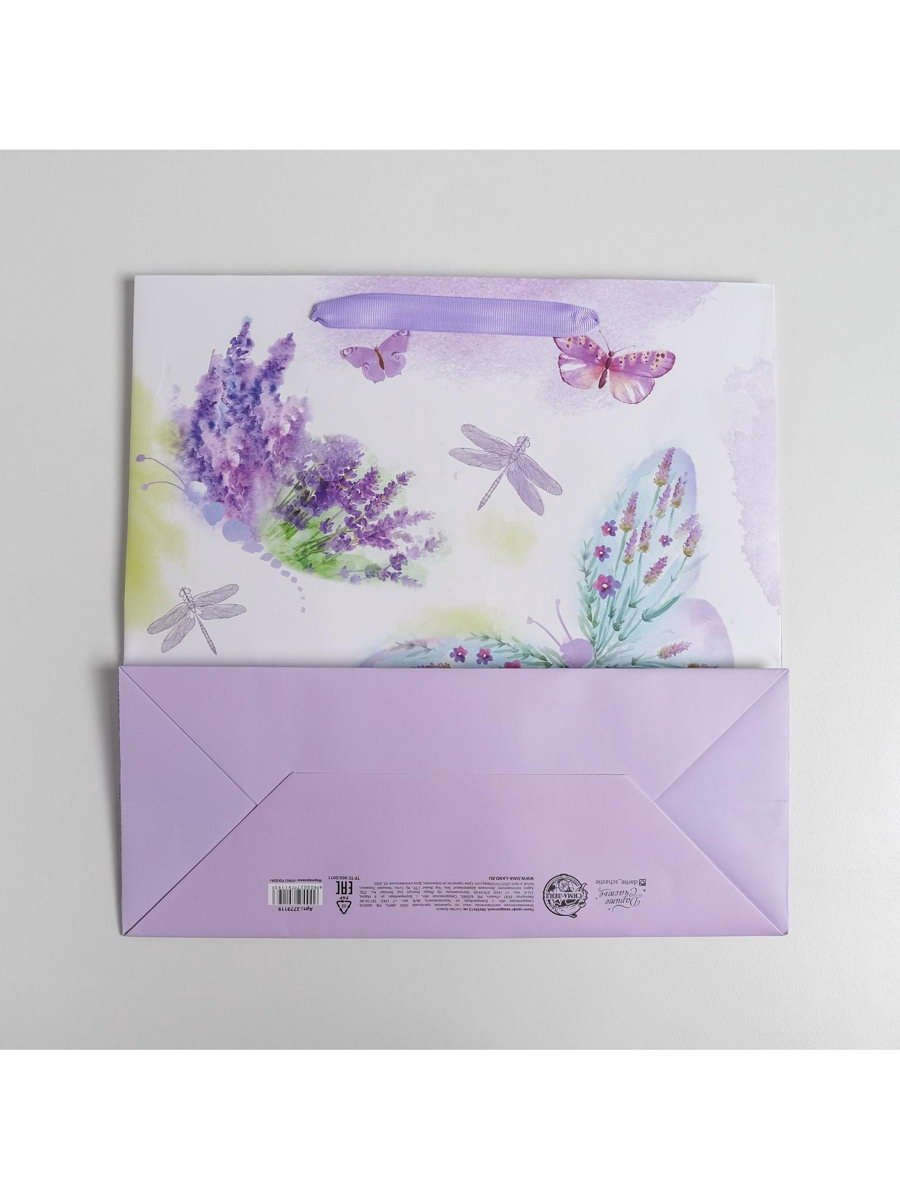 Пакет подарочный ламинированный квадратный, упаковка, "Лавандовая легкость", 30 x 30 x 12 см, 12x30x30 см., Дарите Счастье, Китай