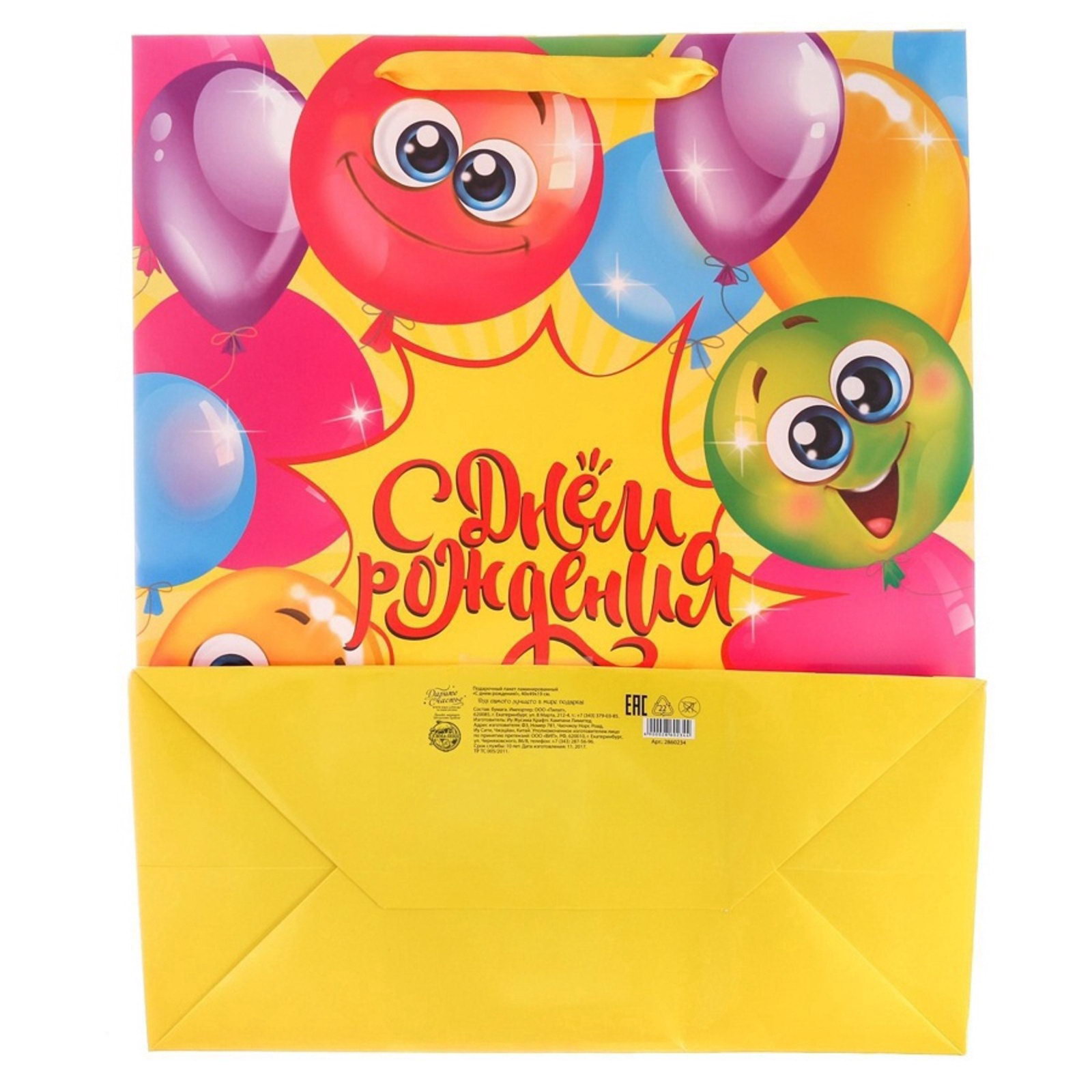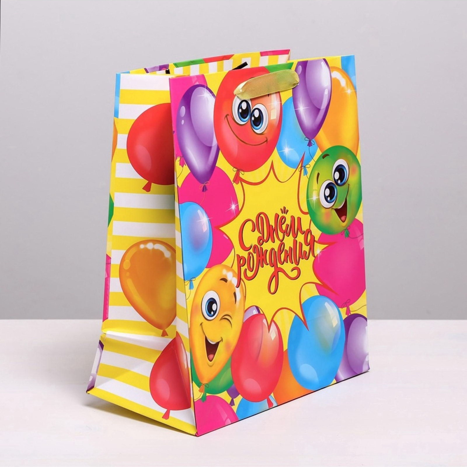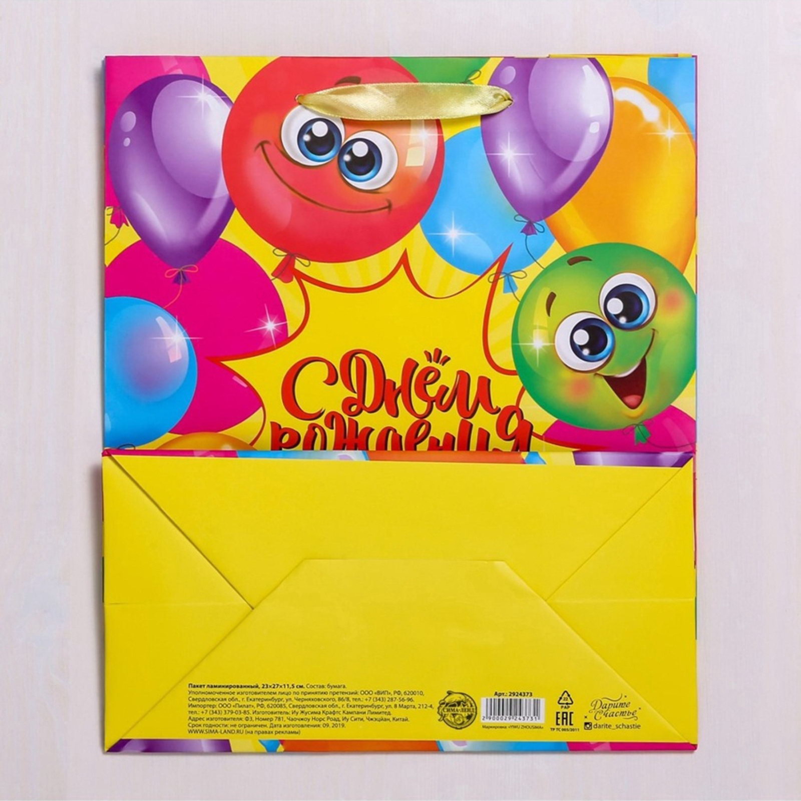 Пакет подарочный ламинированный вертикальный, упаковка, "Весёлого дня рождения!", ML 23 x 27 x 11.5 см, 11.5x23x27 см., Дарите Счастье, Китай