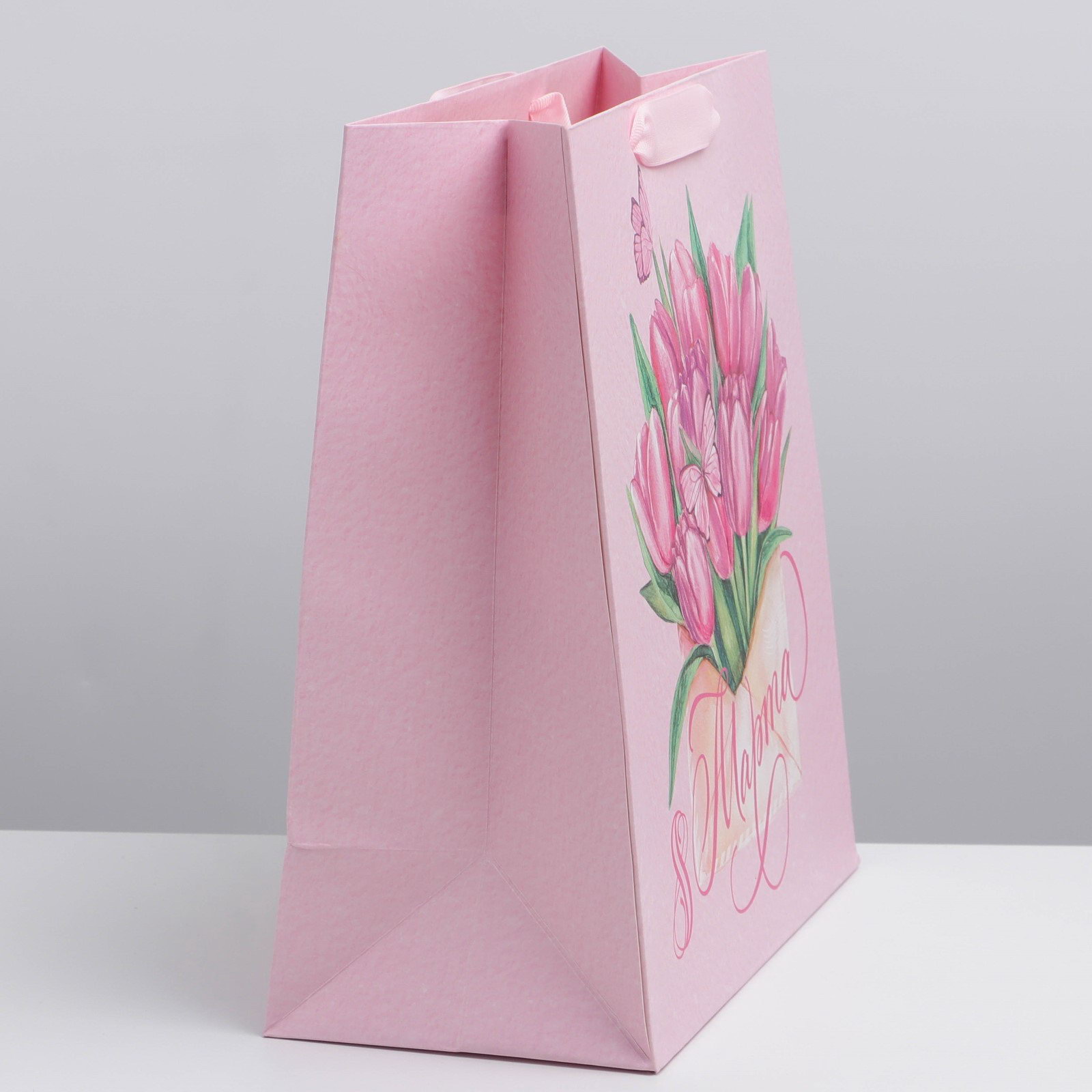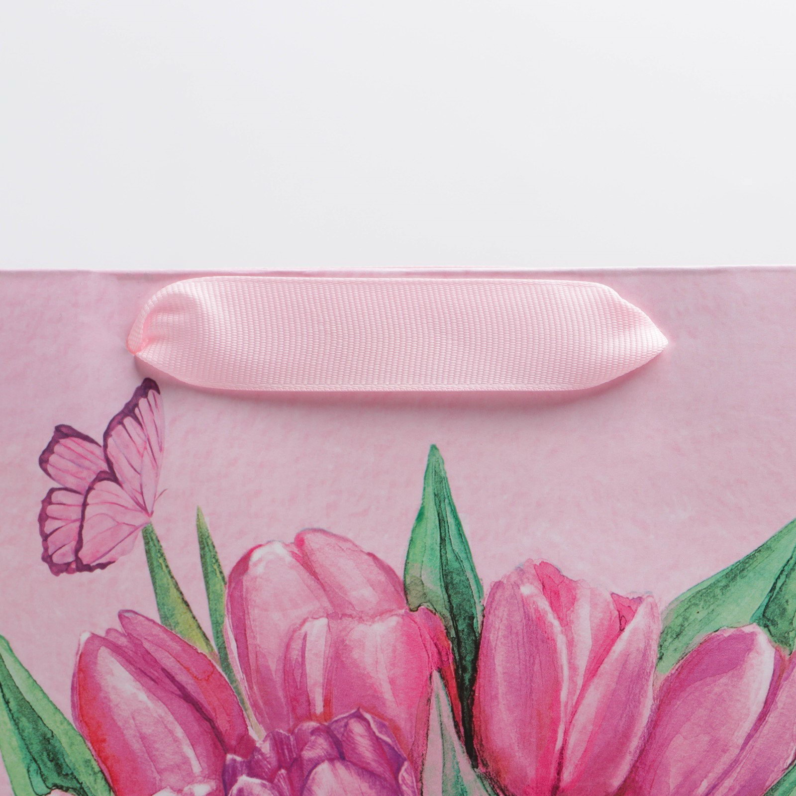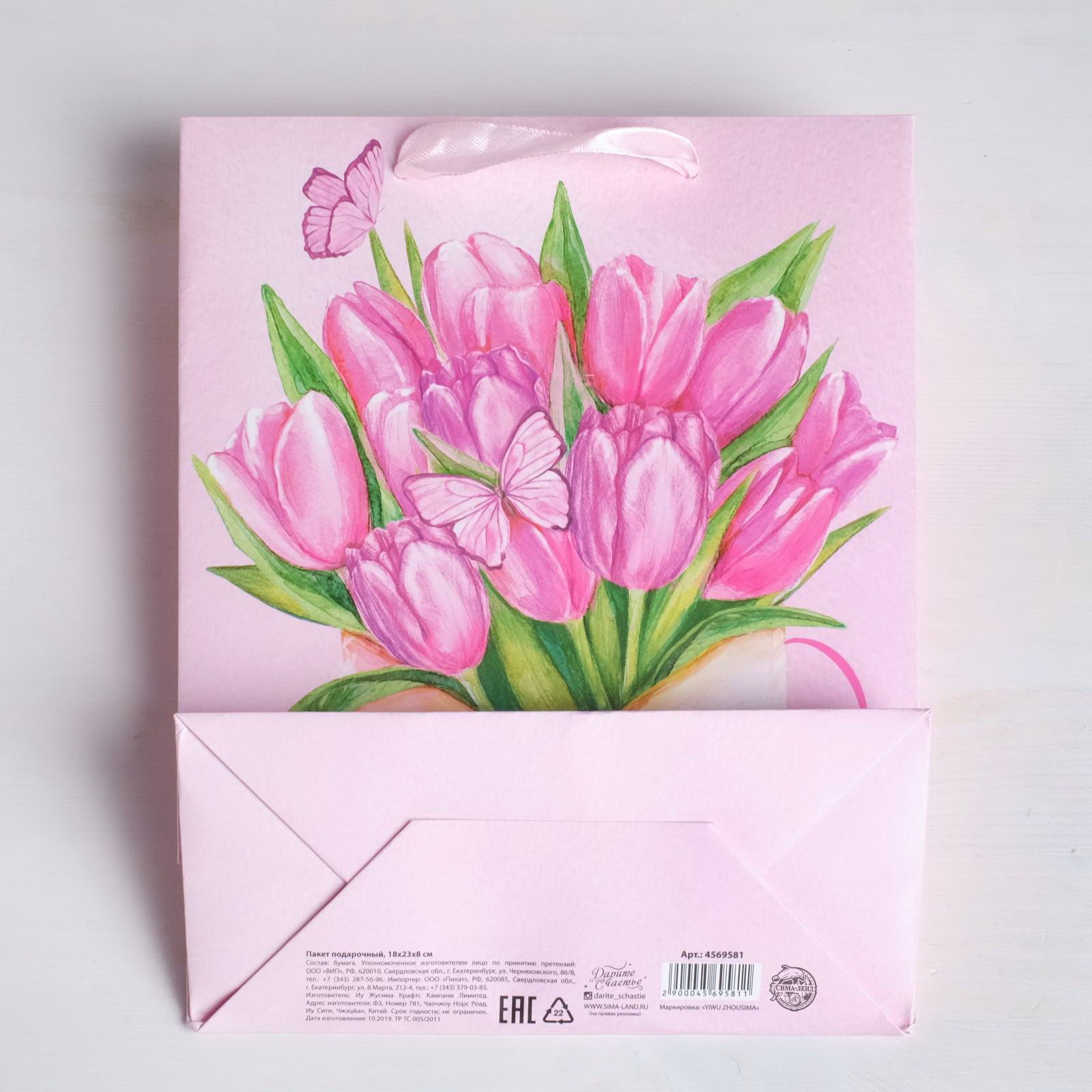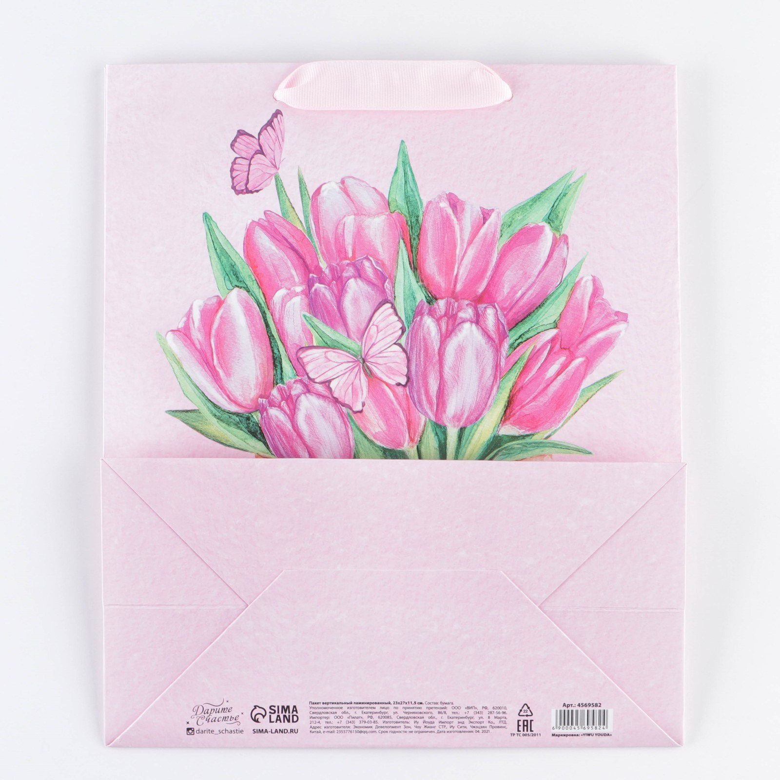 Пакет ламинированный вертикальный "Тюльпаны 8 марта", ML 23 x 27 x 11.5 см, 5.5x12x15 см., Дарите Счастье, Китай
