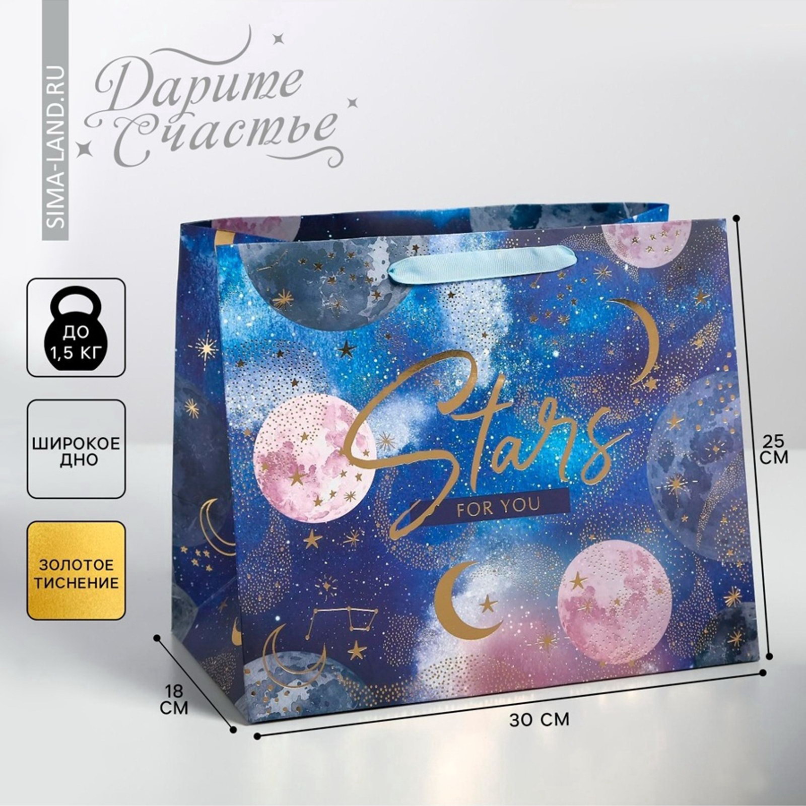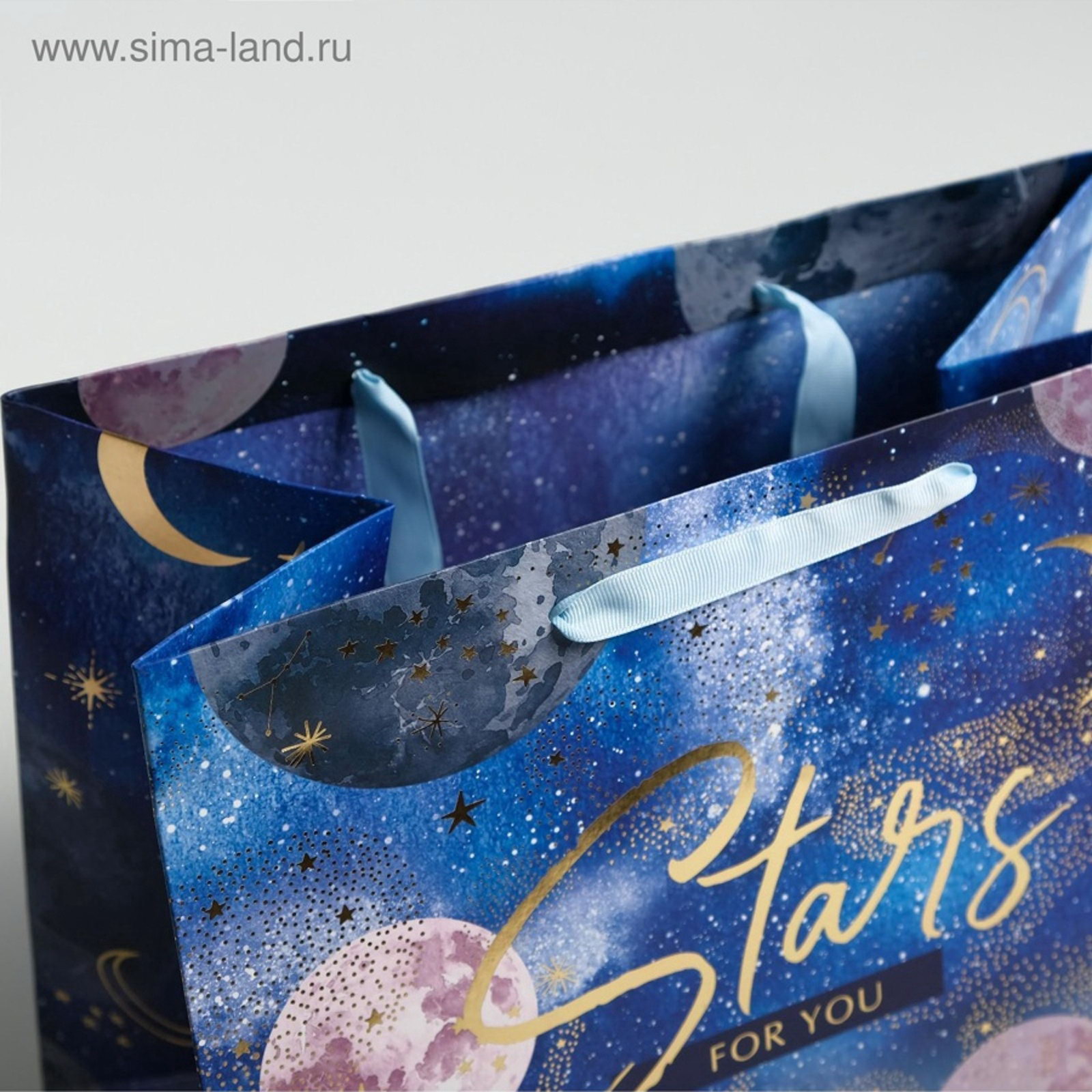 Пакет подарочный ламинированный, упаковка, "Stars", 30.5x25.5x18 см, 18x25.5x30.5 см., Дарите Счастье, Китай