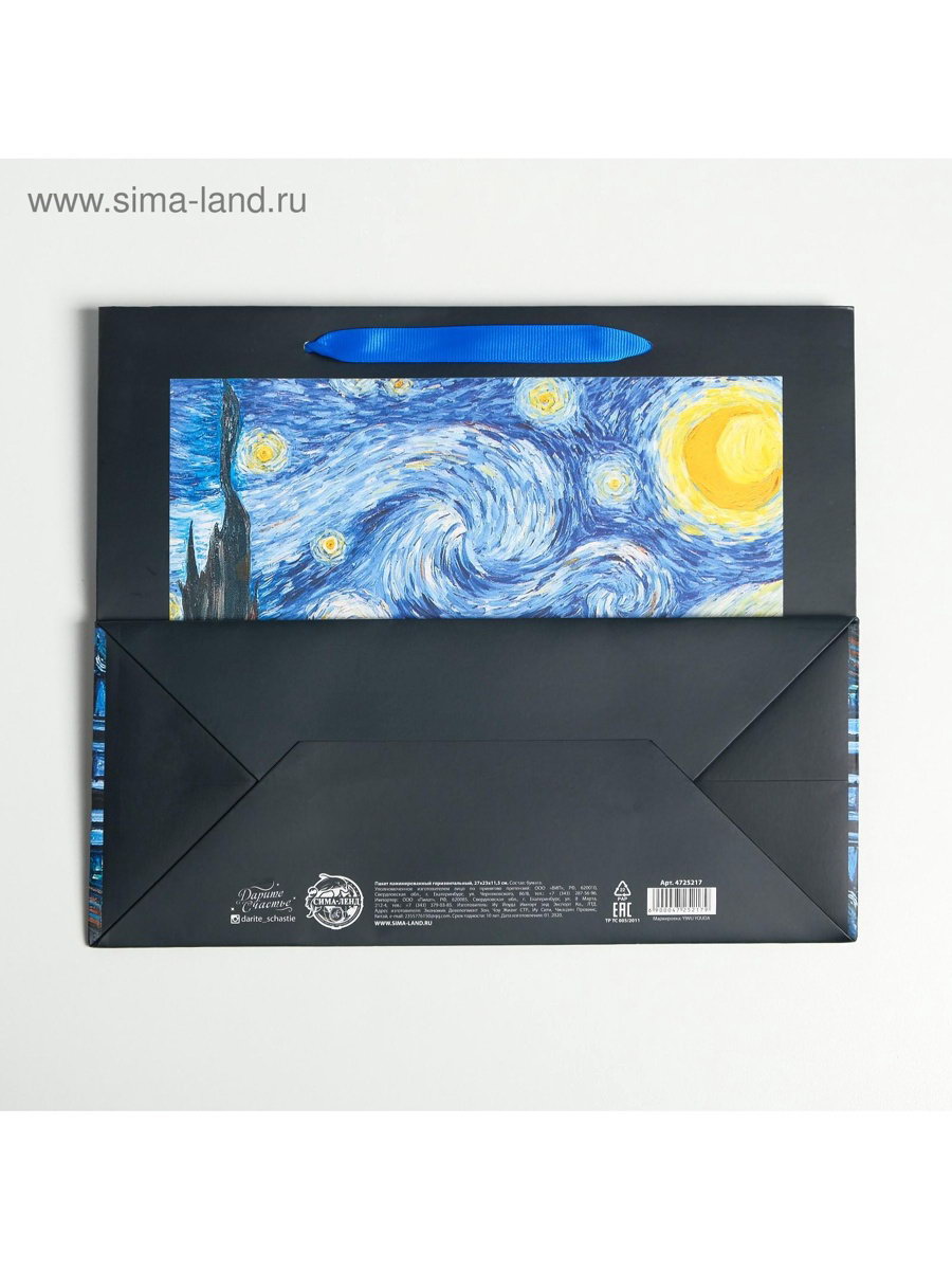 Цвет: Синий, Чёрный Размер упаковки: 27 x 0.3 x 23 см. Для кого: Унисекс Для кого: Унисекс tnved: 4819400000 Запрет реализации по сегментам: 00000000534 Тематика: Живопись Отделка пакета: Ламинация Примерный размер: ML (~ 23см x 27см) Вид ручки: Ручка-лента Тематика праздника: Универсальная тематика Плотность, г/?2: 190 Символ года: Нет Особенности: Без особенностей Рисунок: Да Допустимый вес вложения, г: 1000 | ||
