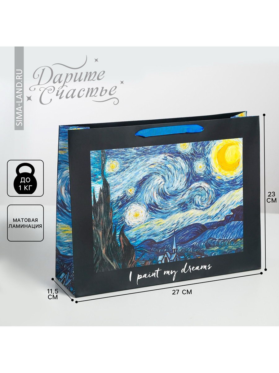 Пакет подарочный ламинированный, упаковка, I paint my dream, ML 27 x 23 x 11.5 см, 23x27x11.5 см., Дарите Счастье, Китай