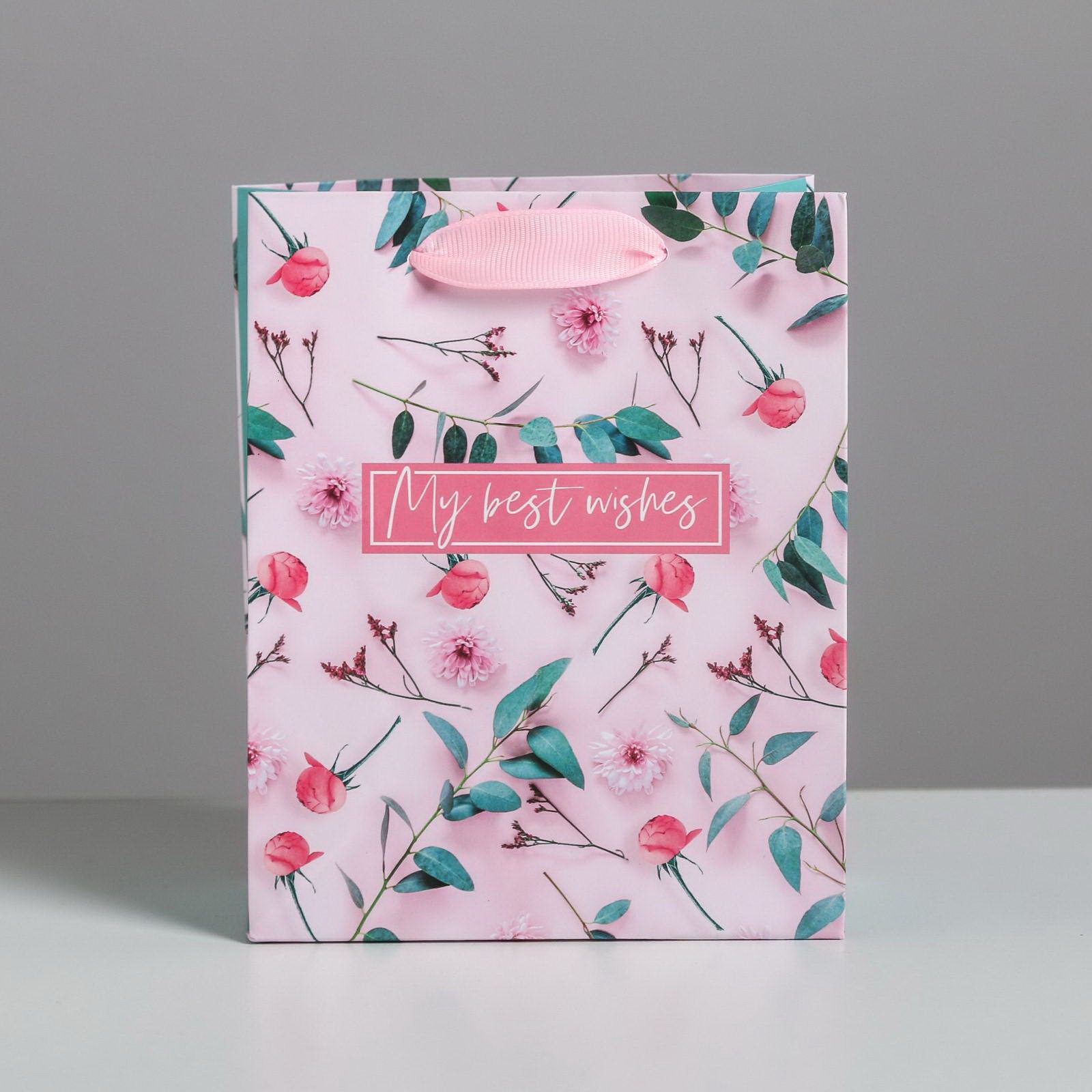 Пакет ламинированный вертикальный "My best wishes", S 12 x 15 x 5.5 см, 5.5x12x15 см., Дарите Счастье, Китай