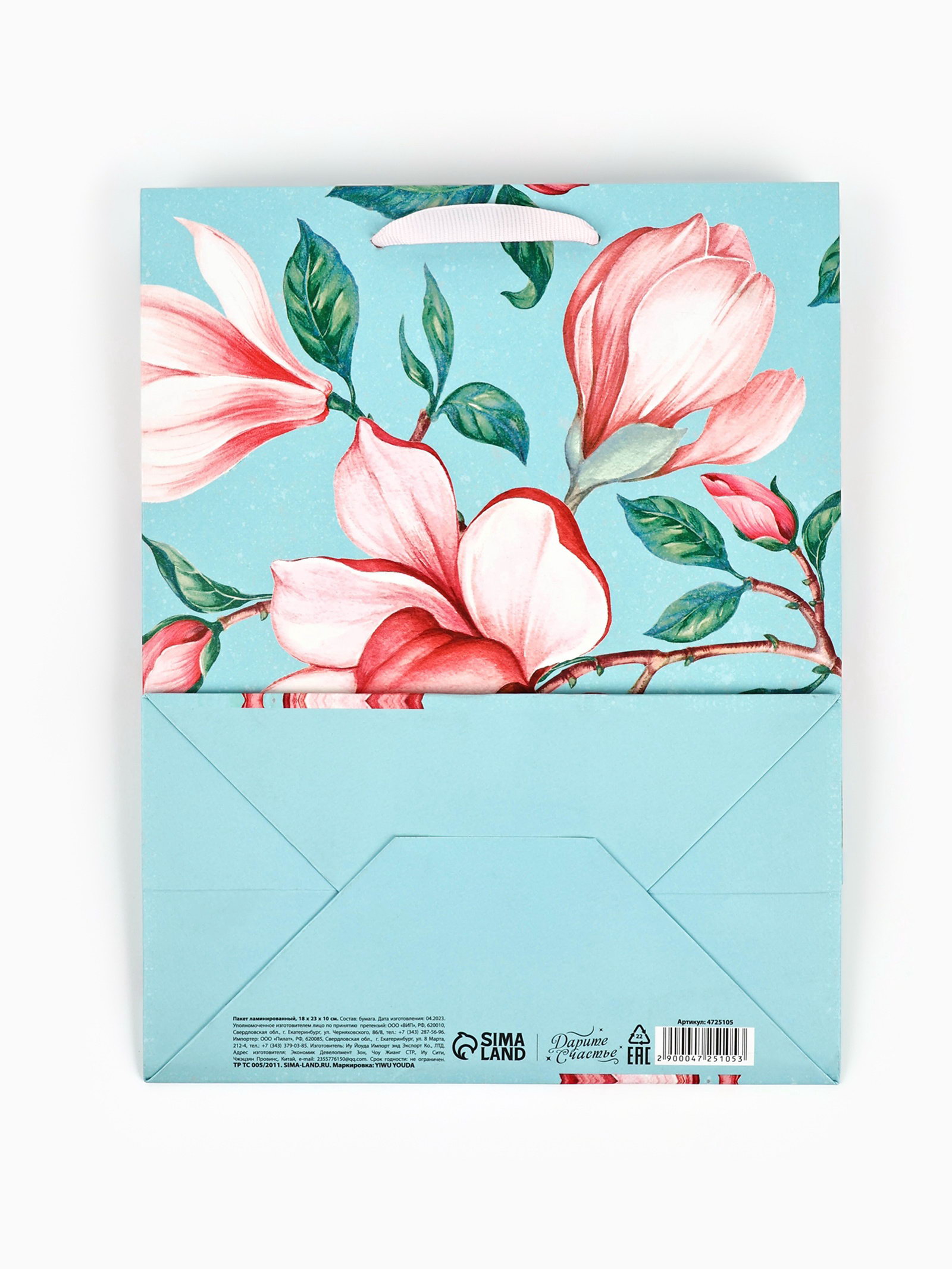 Пакет подарочный ламинированный, упаковка, "Магнолия", MS 18 x 23 x 10 см, 10x18x23 см., Дарите Счастье, Китай