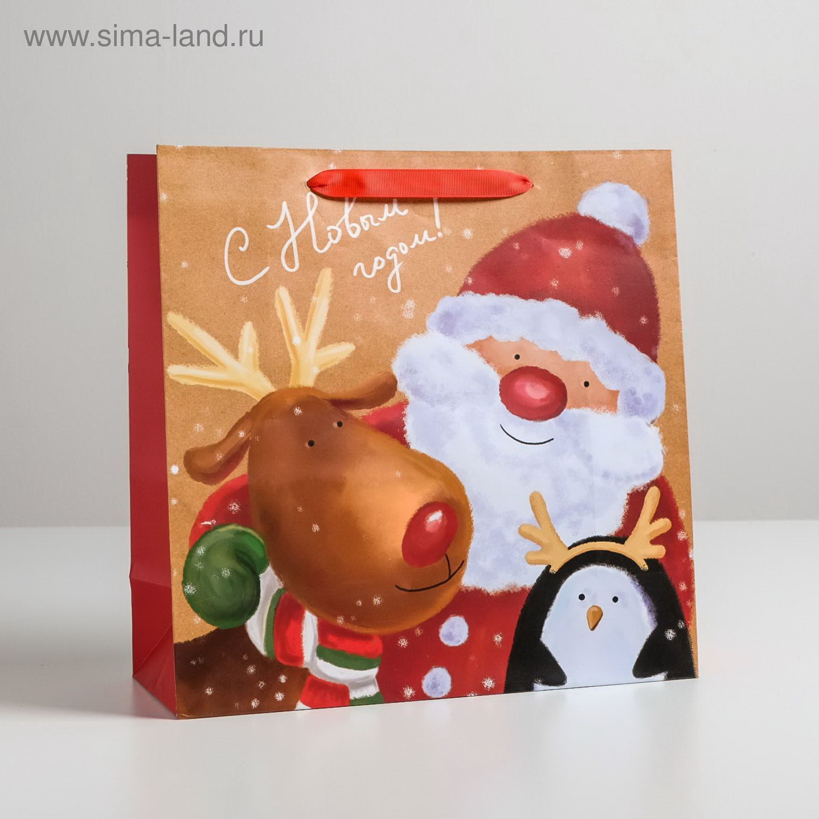 Пакет подарочный новогодний ламинированный квадратный "Весёлая компания", 30x30x12 см, 12x30x30 см., Дарите Счастье, Китай
