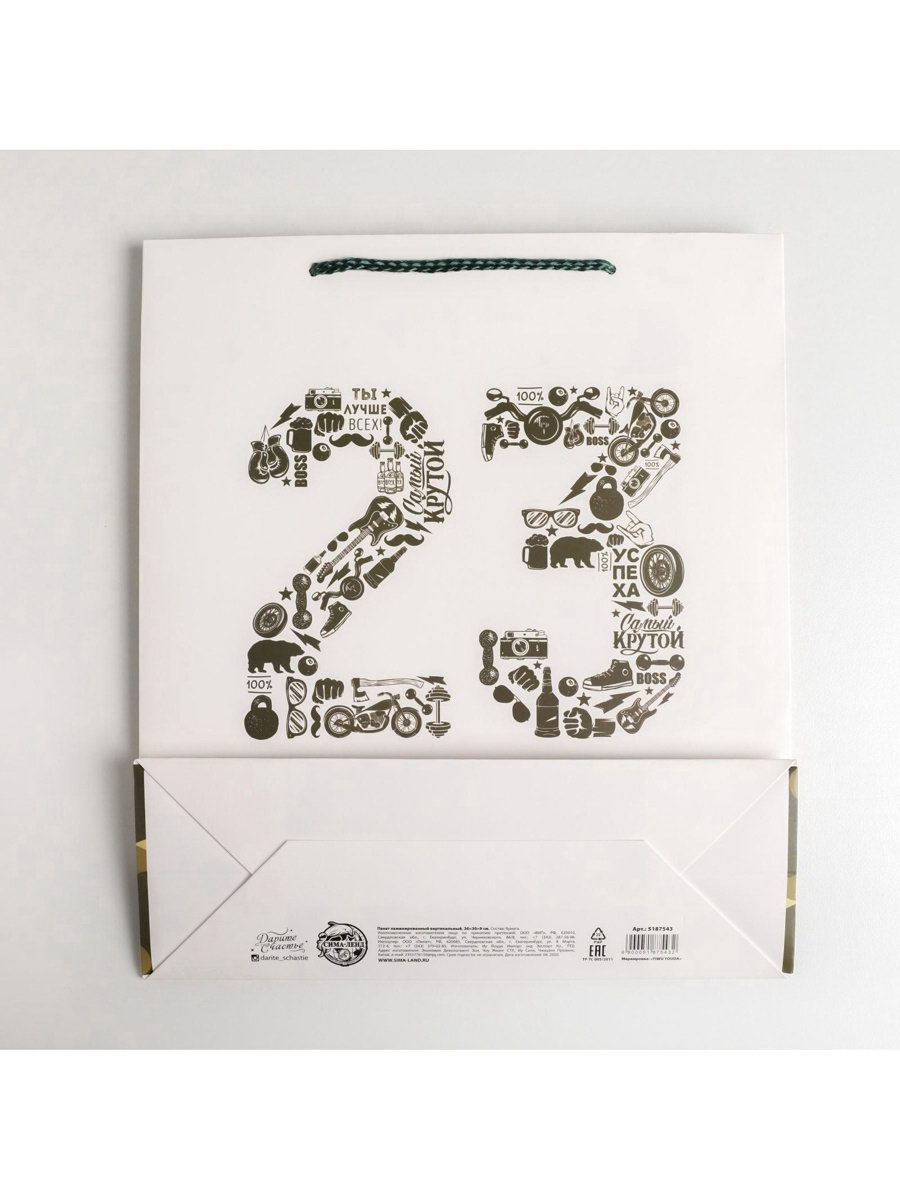 Пакет подарочный ламинированный, упаковка, "23 февраля", M 26 x 30 x 9 см, 9x26x30 см., Дарите Счастье, Китай