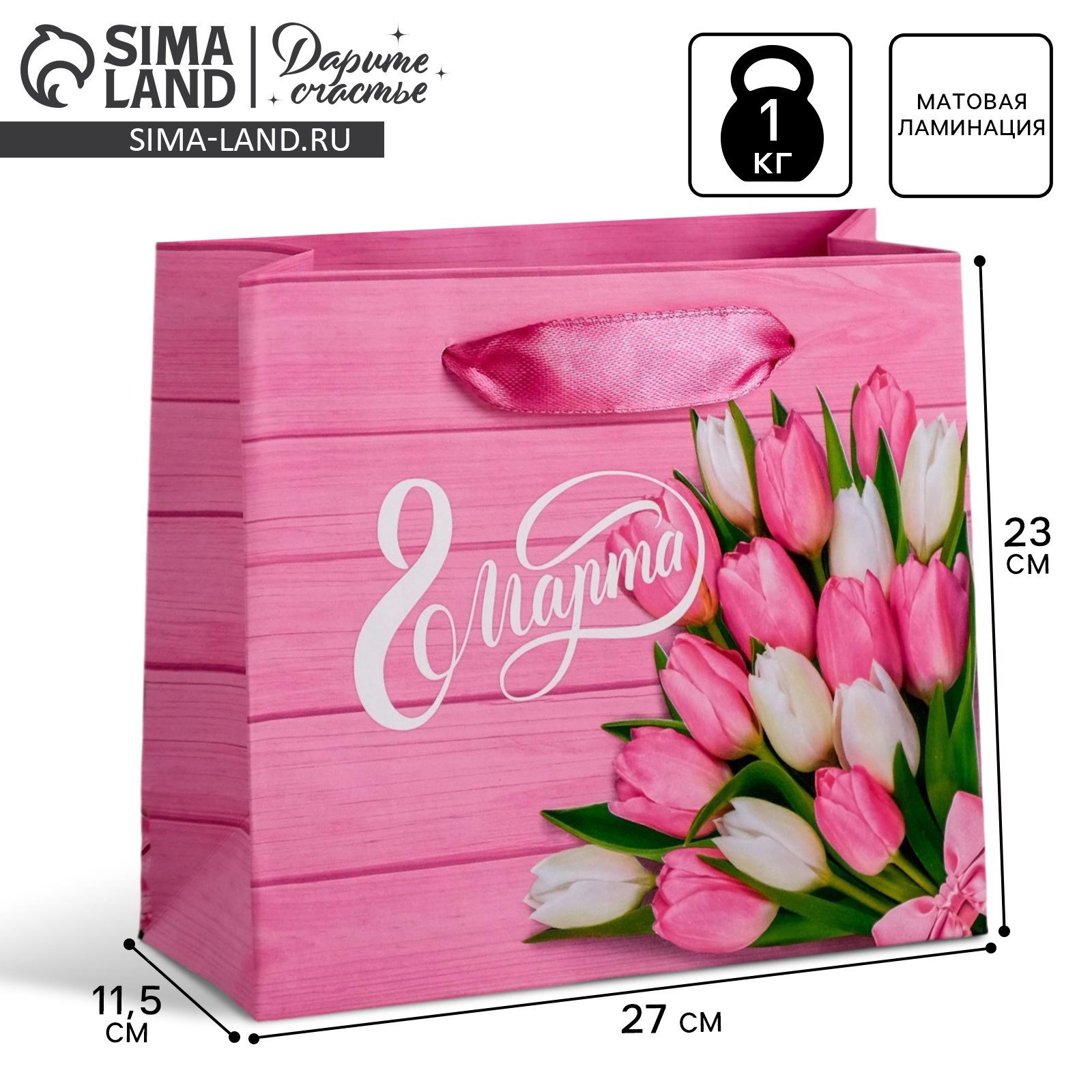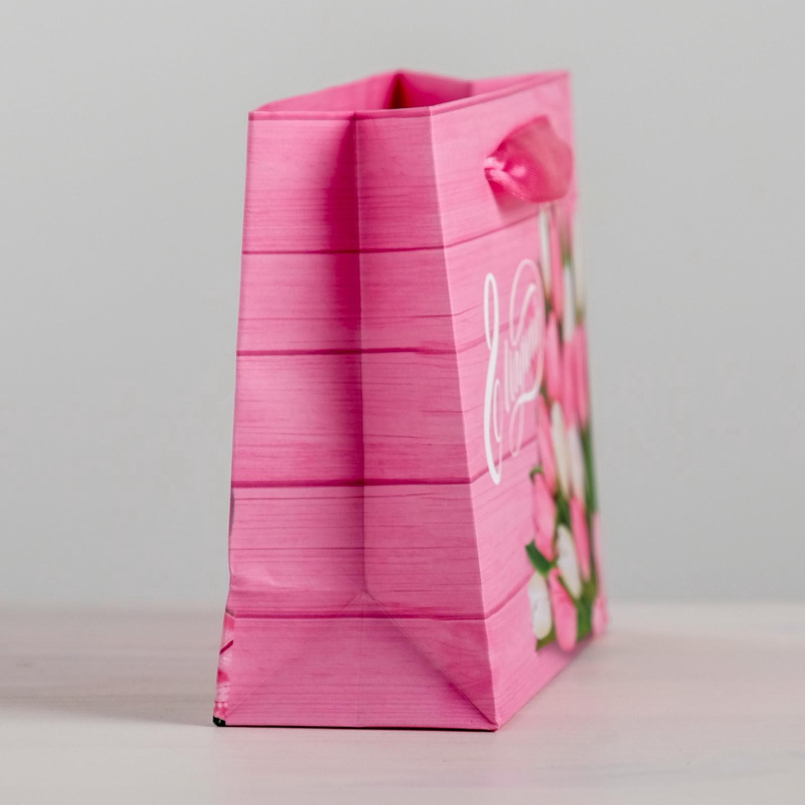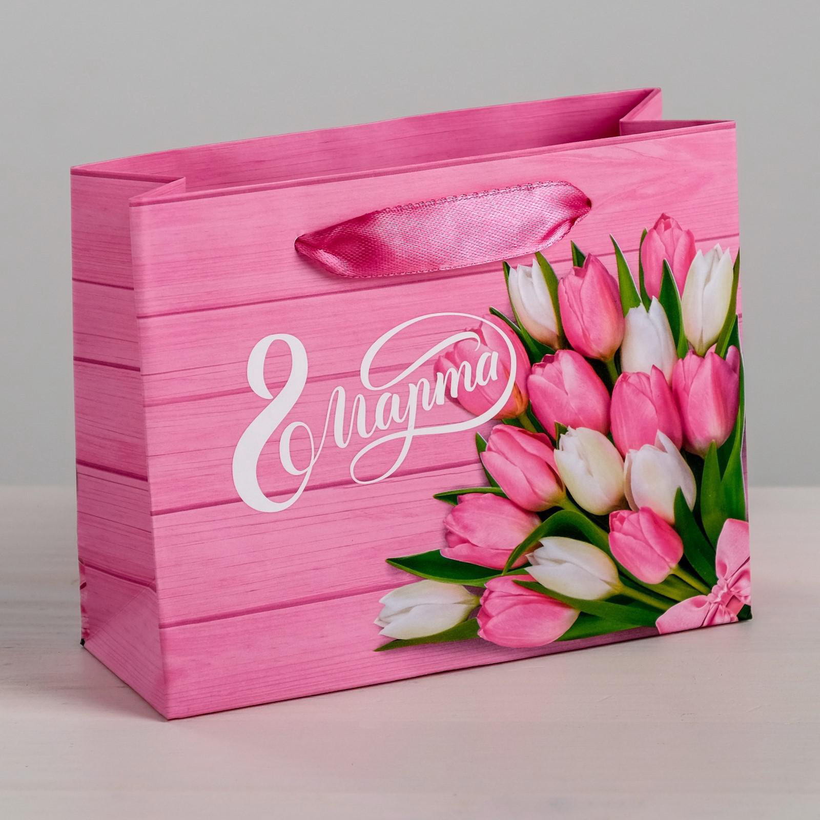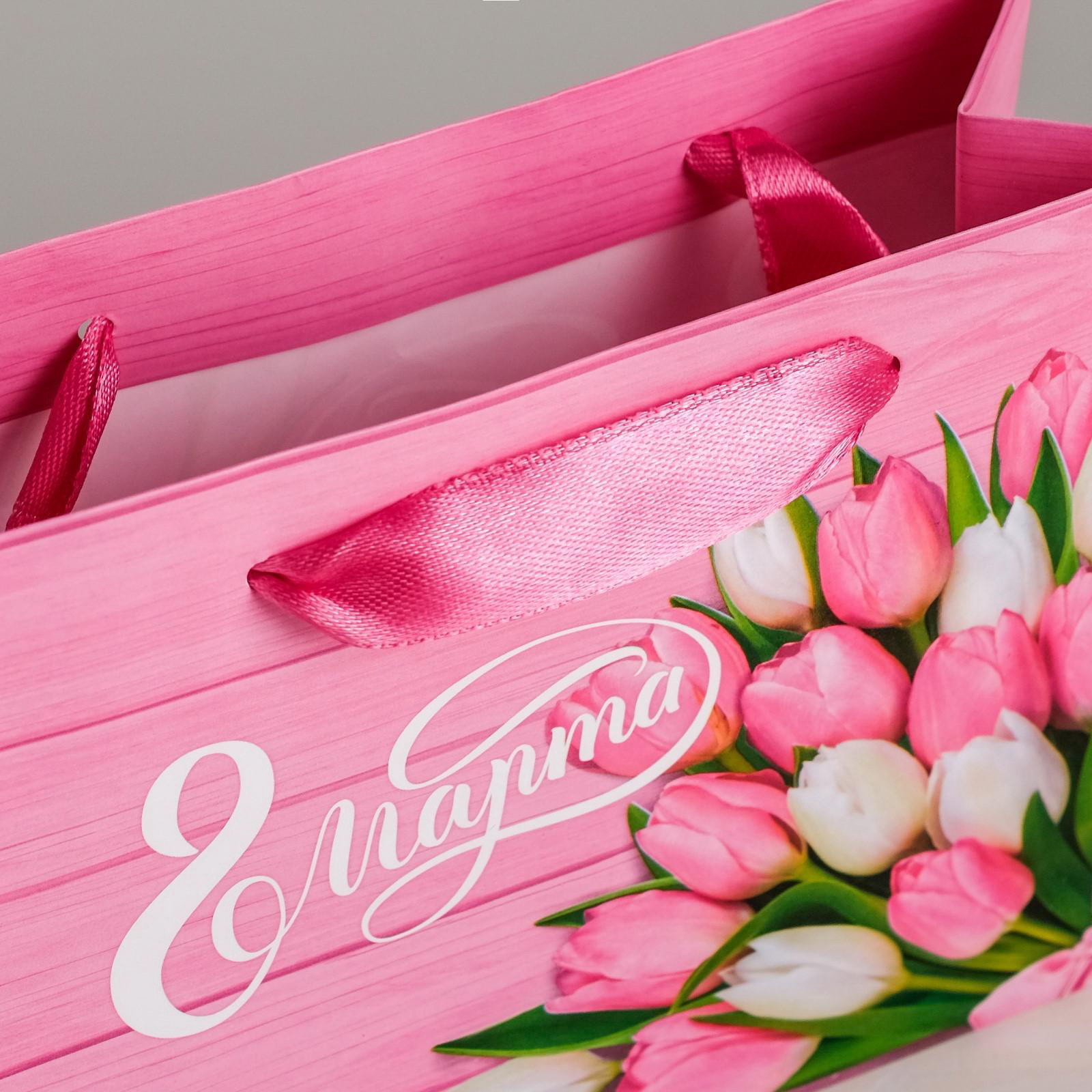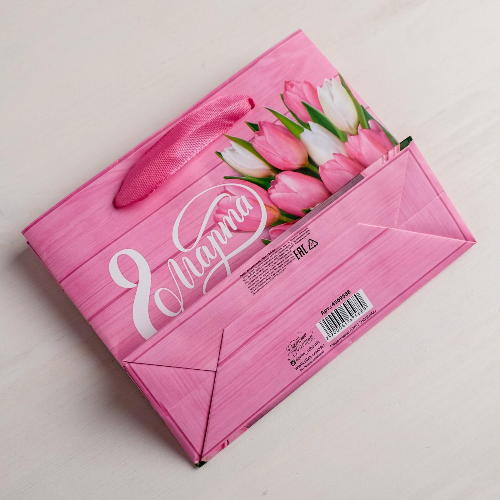 Пакет подарочный ламинированный горизонтальный, упаковка, "Женский день", ML 27 x 23 x 11.5 см, 8x23x27 см., Дарите Счастье, Китай