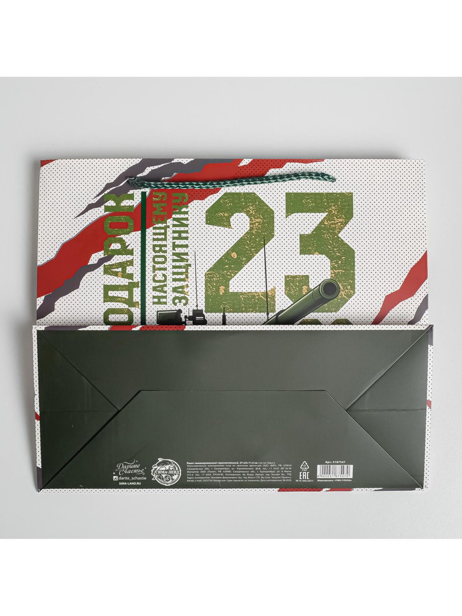Пакет подарочный ламинированный, упаковка, "С 23 февраля", ML 27 x 23 x 11.5 см, 11.5x27x23 см., Дарите Счастье, Китай