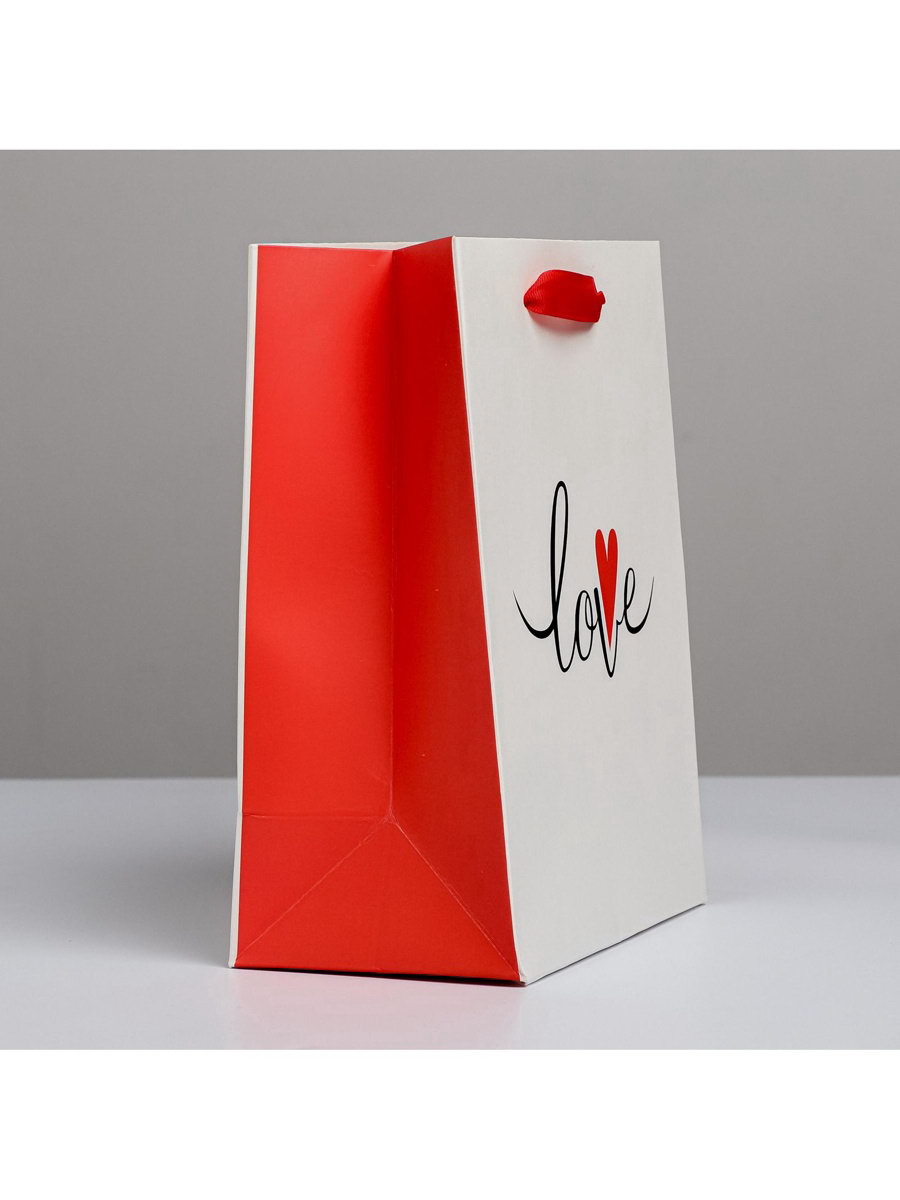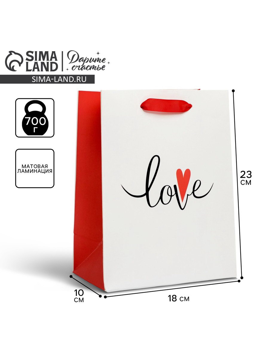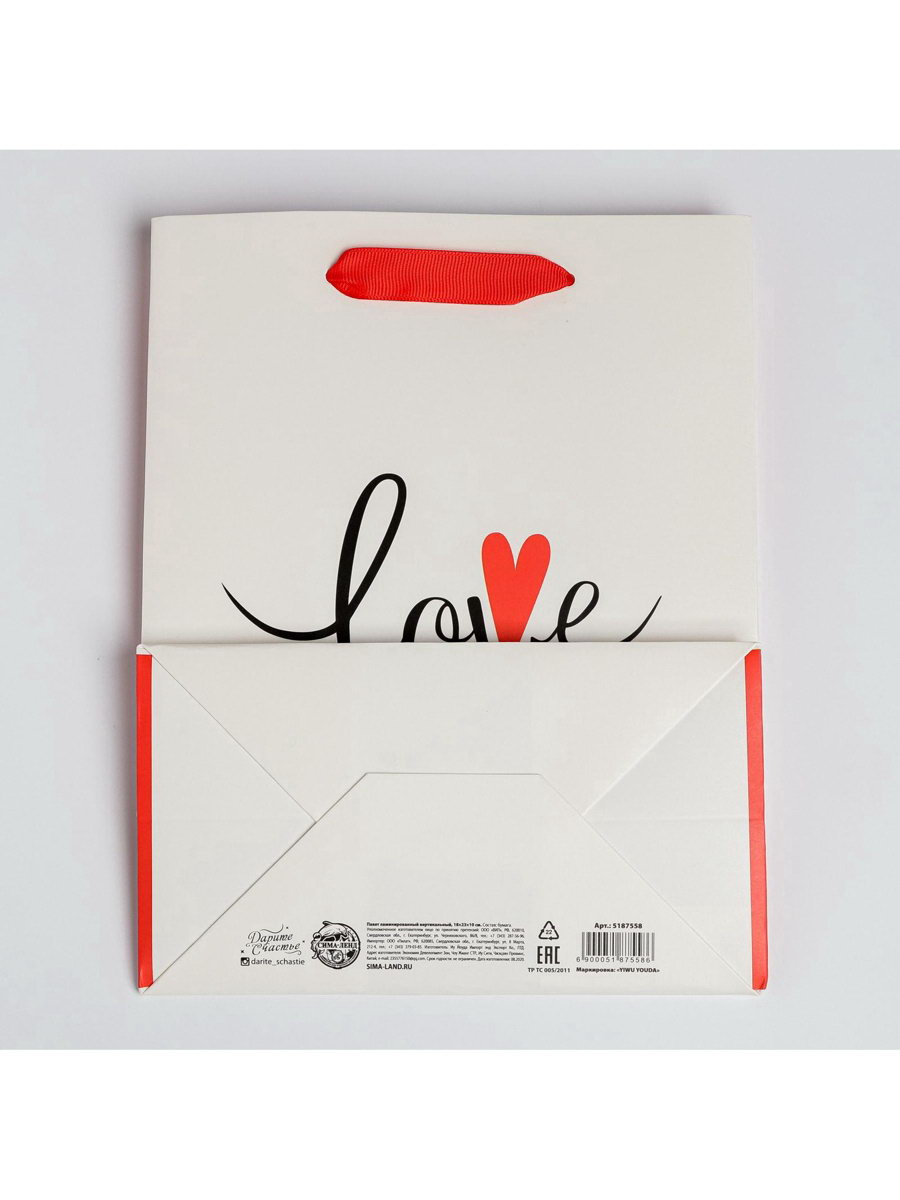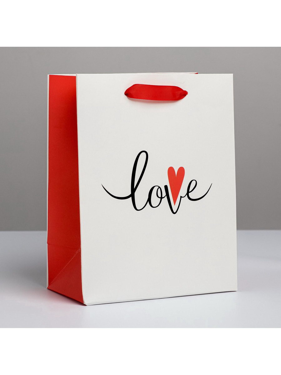 Пакет подарочный ламинированный, упаковка, "Love", MS 18 x 23 x 10 см, 10x18x23 см., Дарите Счастье, Китай