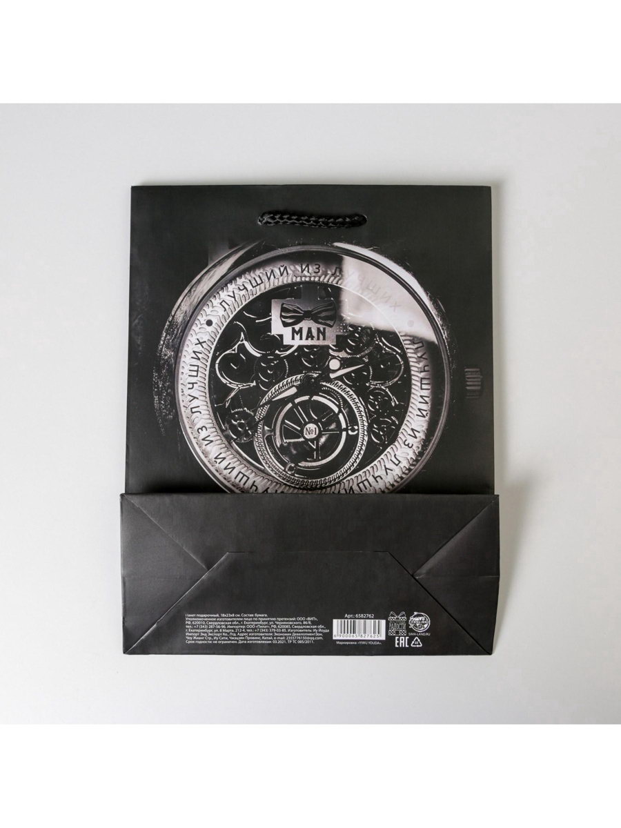 Пакет подарочный ламинированный, упаковка, "Лучшему мужчин", MS 18 x 23 x 8 см, 8x18x23 см., Доступные Радости, Китай