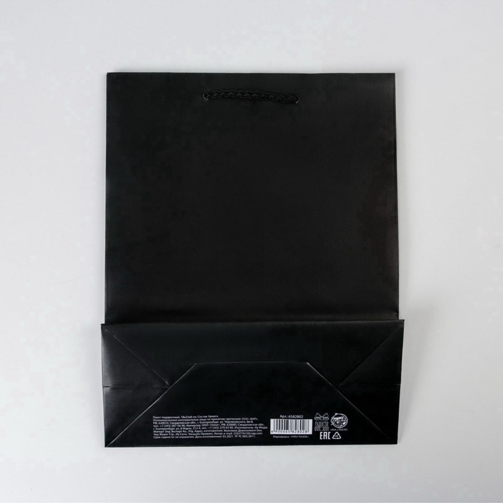 Пакет подарочный ламинированный, упаковка, "Чёрный", MS 18 x 23 x 8 см, 8x18x23 см., Доступные Радости, Китай