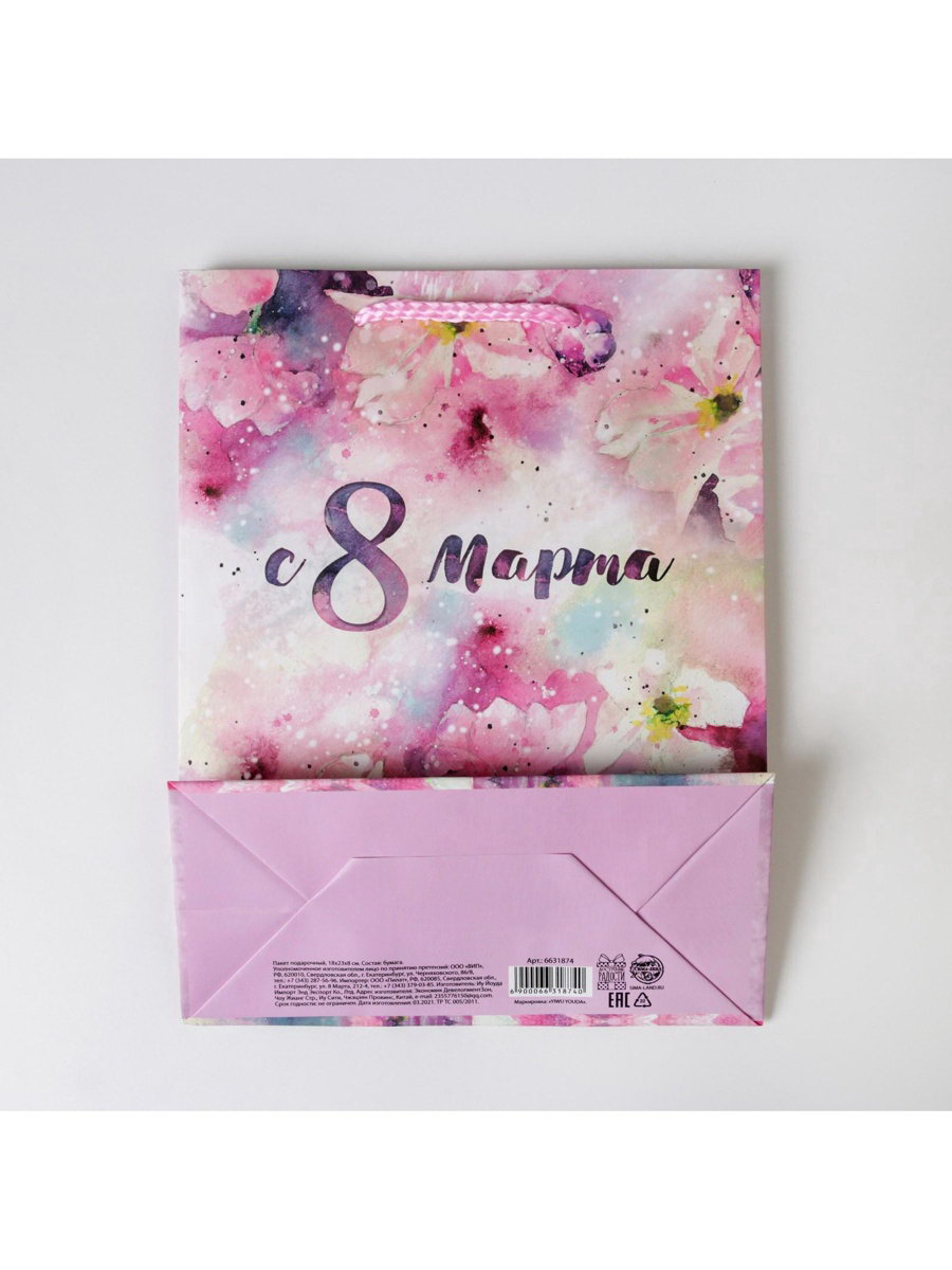 Пакет подарочный ламинированный, упаковка, "С 8 марта", MS 18 x 23 x 8 см, 8x18x23 см., Доступные Радости, Китай