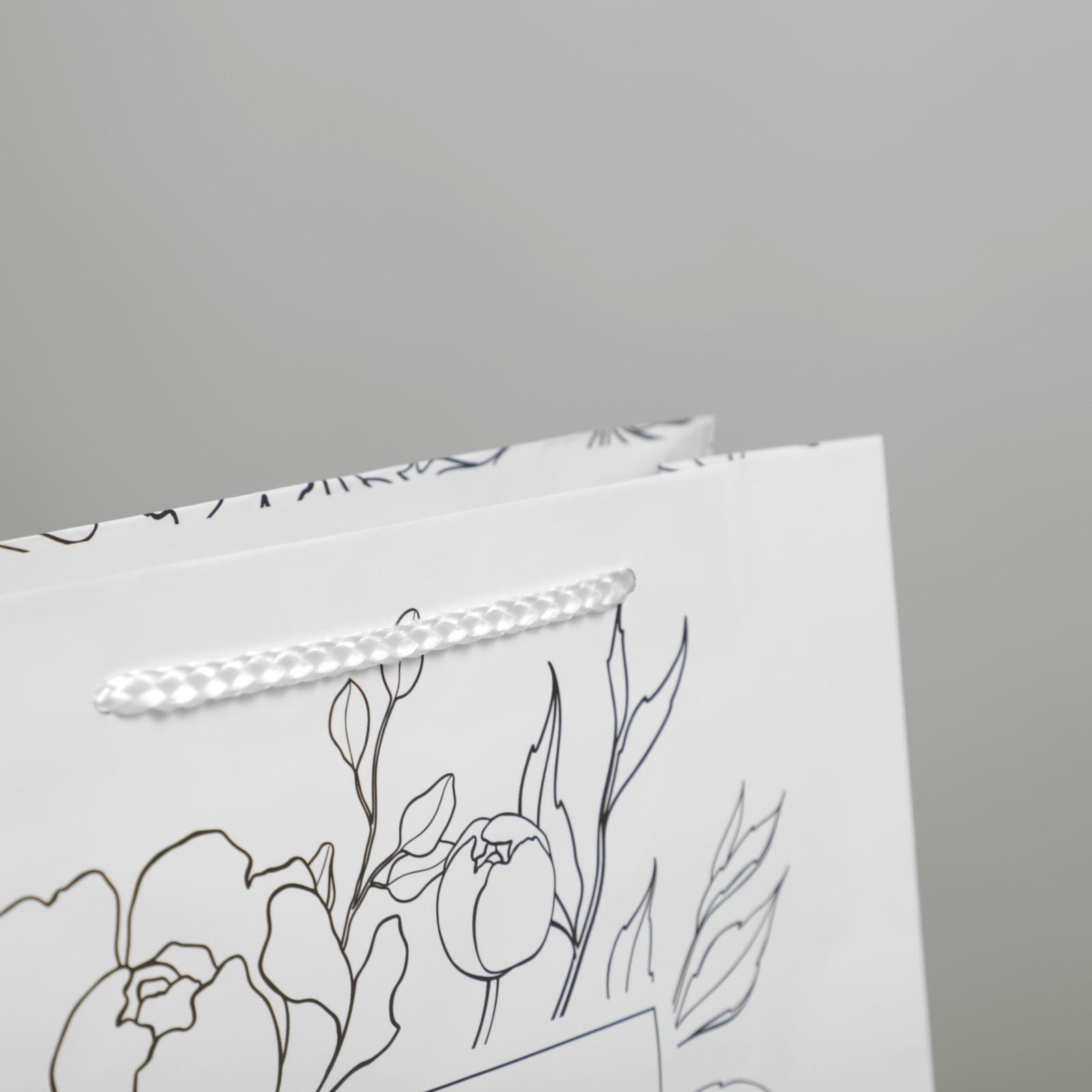 Тематика: Надписи, цифры, буквы, Растительный орнамент Тематика праздника: 8 Марта, Универсальная тематика Размер упаковки: 23 x 25 x 0.3 см. Для кого: Для женщины tnved: 4819400000 tnved: 4819400000 Цвет: Белый Отделка пакета: Ламинация Вид ручки: Ручка-шнур Примерный размер: ML (~ 23см x 27см) Особенности: Без особенностей Плотность, г/?2: 128 Допустимый вес вложения, г: 700 | ||