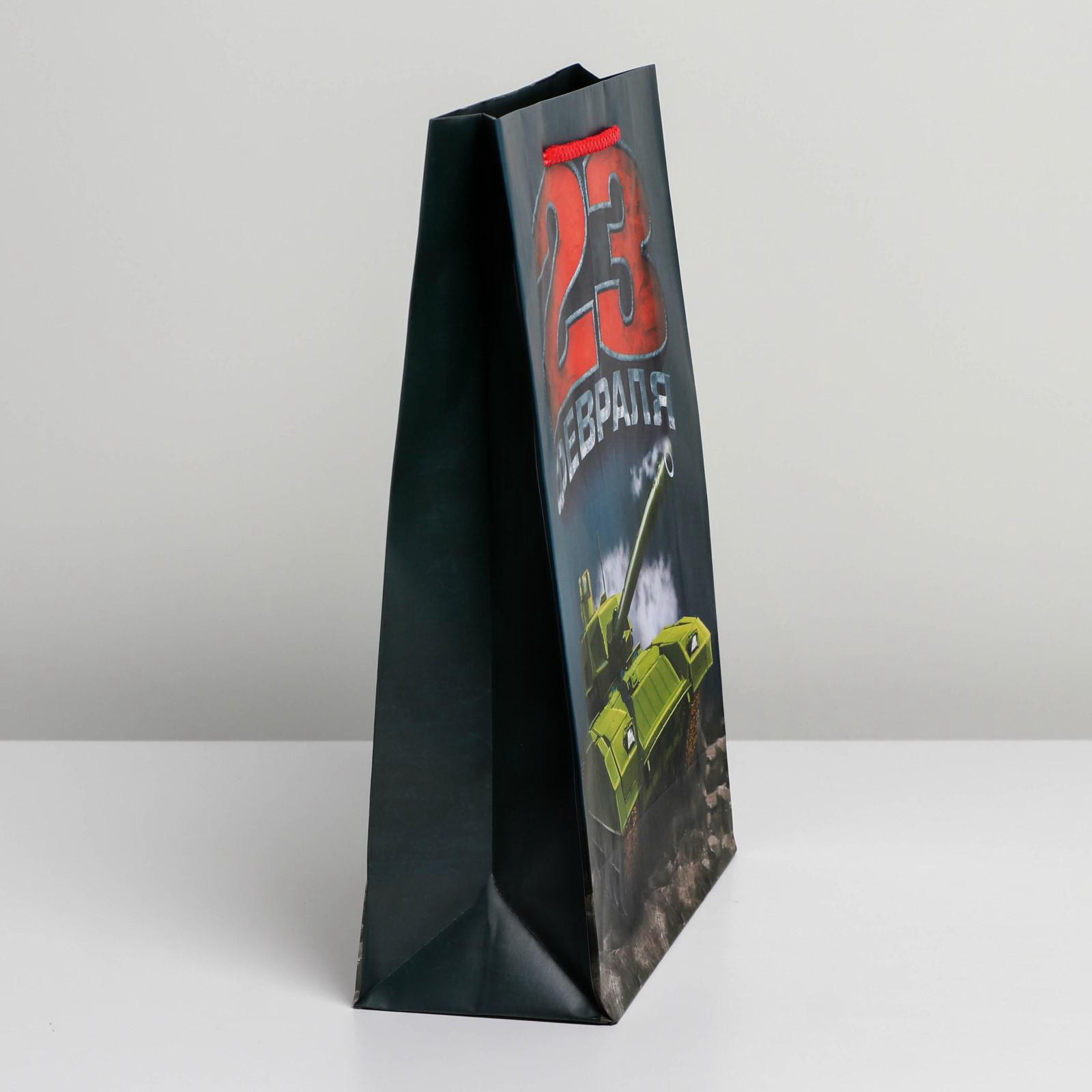 Пакет подарочный ламинированный, упаковка, "С 23 февраля", ML 25 x 21 x 8 см, 8x23x27 см., Доступные Радости, Китай
