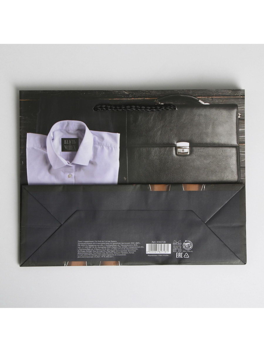 Тематика праздника: 23 Февраля, Универсальная тематика Размер упаковки: 18 x 0.2 x 23 см. Для кого: Для мужчины Для кого: Для мужчины tnved: 4819400000 Цвет: Чёрный Тематика: Мужская Вид ручки: Ручка-шнур Отделка пакета: Ламинация Примерный размер: ML (~ 23см x 27см) Особенности: Без особенностей Плотность, г/?2: 128 Допустимый вес вложения, г: 500 | ||