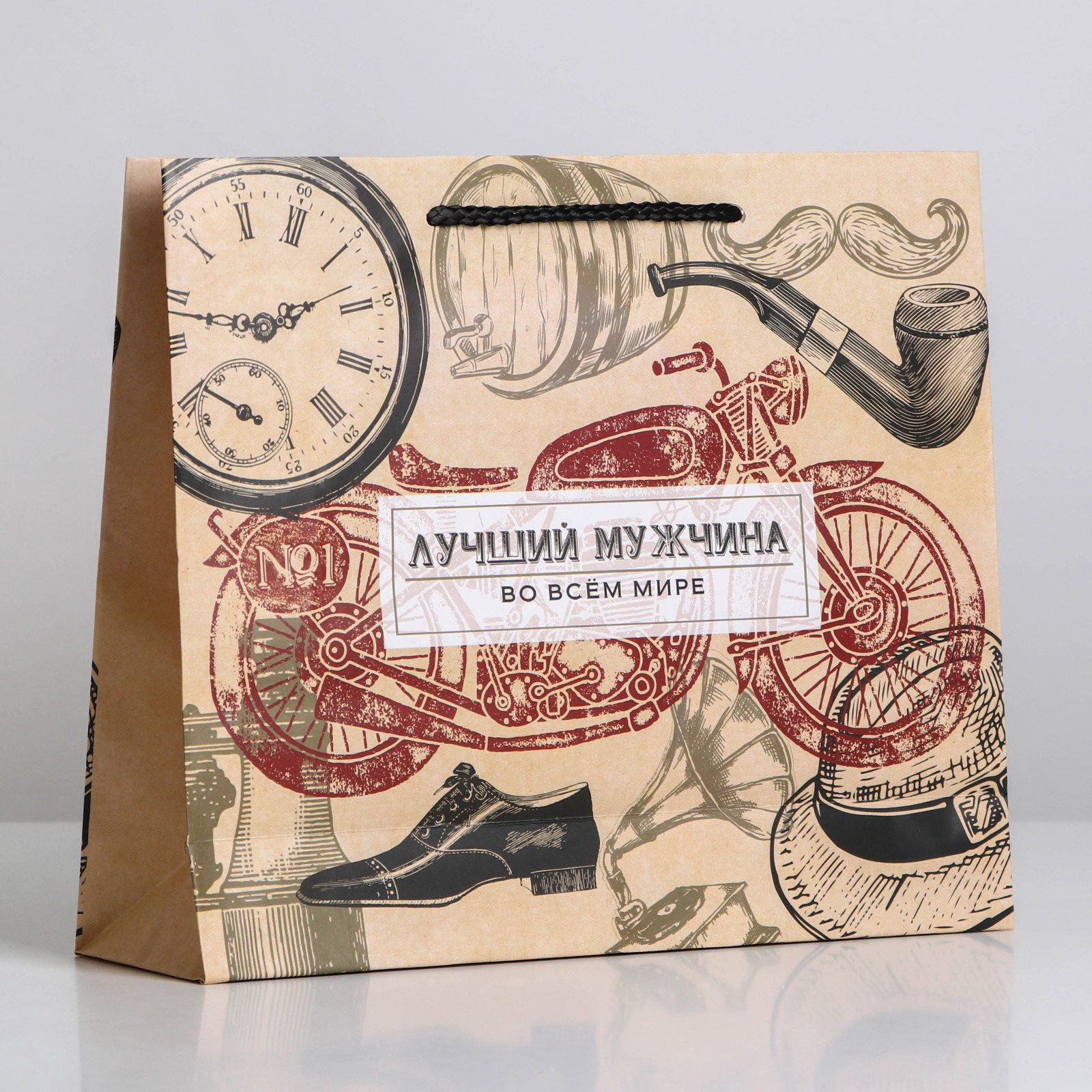 Пакет подарочный ламинированный, упаковка, "Лучшему мужчине во всем мире", ML 21 x 25 x 8 см, 8x27x23 см., Доступные Радости, Китай