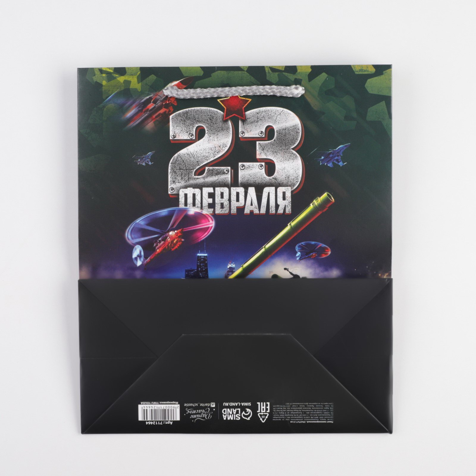 Тематика: Военная, Мужская Размер упаковки: 27 x 0.1 x 23 см. tnved: 4819400000 Вид ручки: Ручка-шнур Тематика праздника: 23 Февраля Цвет: Зелёный Особенности: Без особенностей Примерный размер: ML (~ 24см - 27см) Отделка пакета: Ламинация Плотность, г/?2: 190 Рисунок: Да Форма пакета: Горизонтальный Символ года: Нет Допустимый вес вложения, г: 1000 | ||