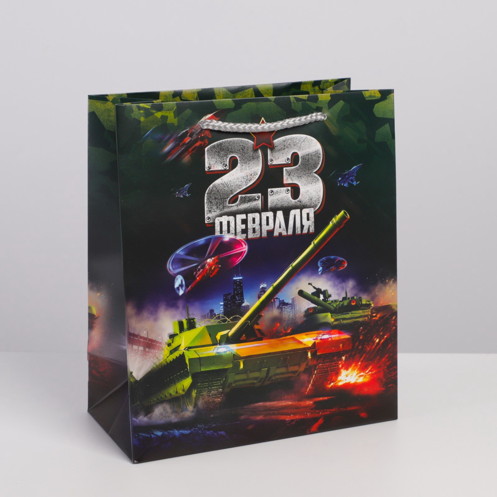 Пакет подарочный ламинированный вертикальный, упаковка, "Танк", ML 23 x 27 x 11.5 см, 23x27x11.5 см., Дарите Счастье, Китай