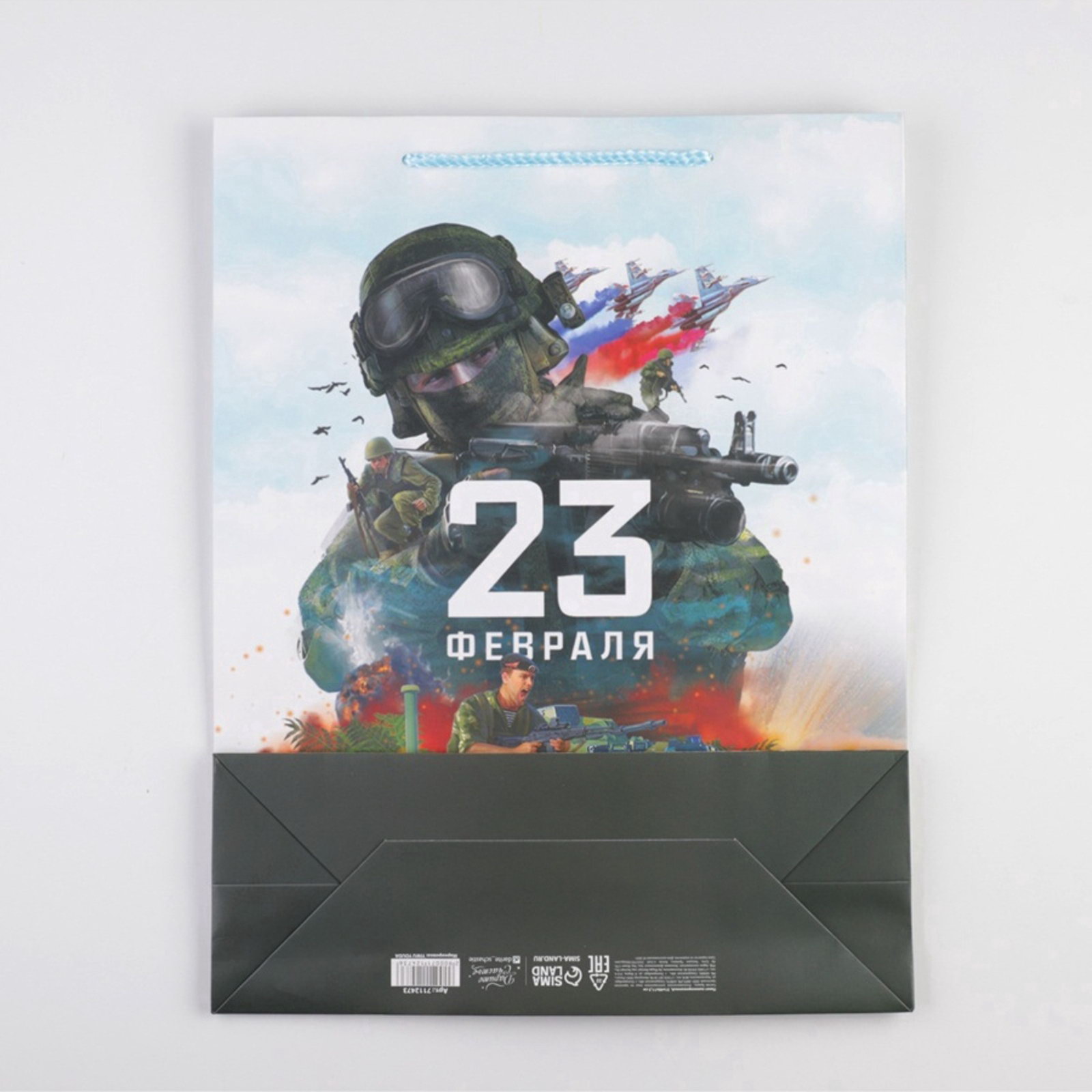 Пакет подарочный ламинированный, упаковка, "С 23 февраля", L 31x40x11.5 см, 31x40x11.5 см., Дарите Счастье, Китай