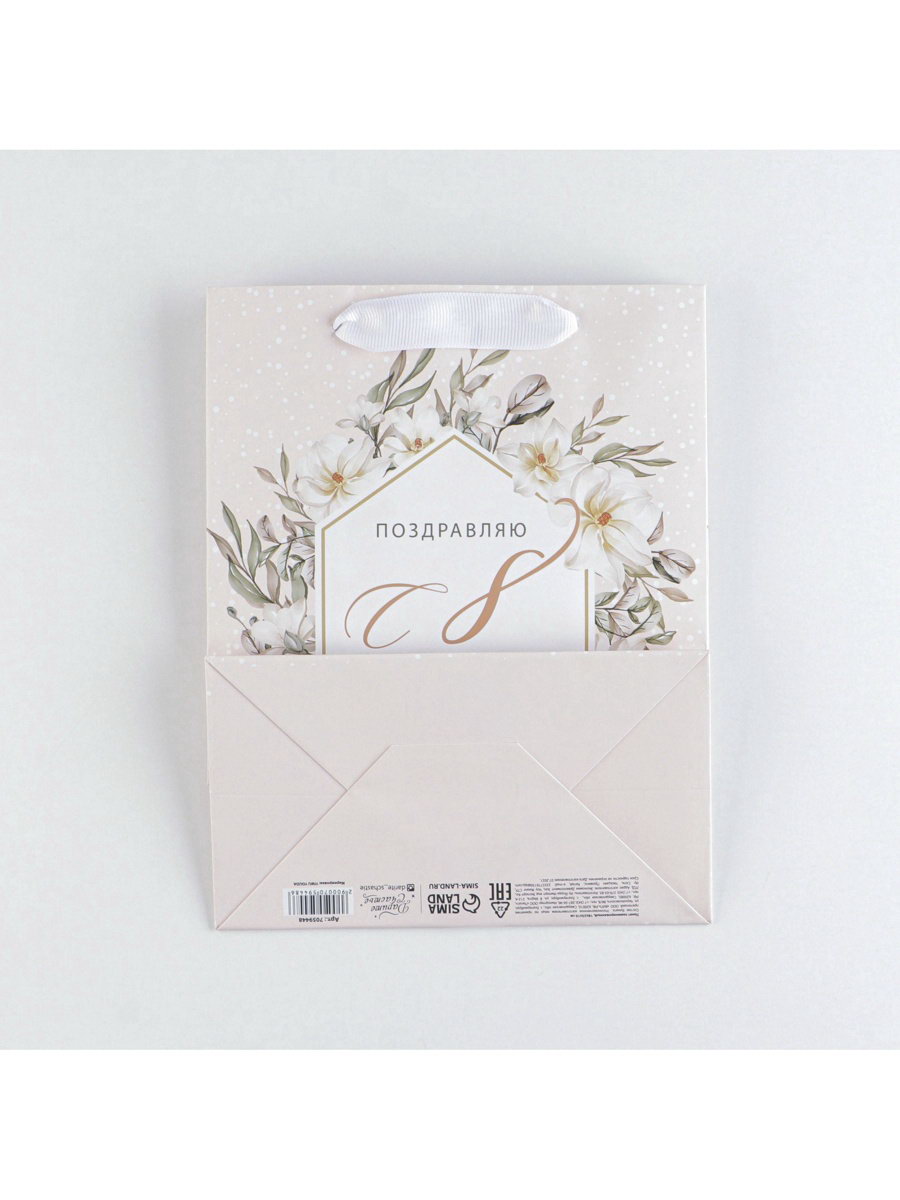 Пакет подарочный ламинированный, упаковка, "8 марта", MS 18 x 23 x 10 см, 18x23x10 см., Дарите Счастье, Китай