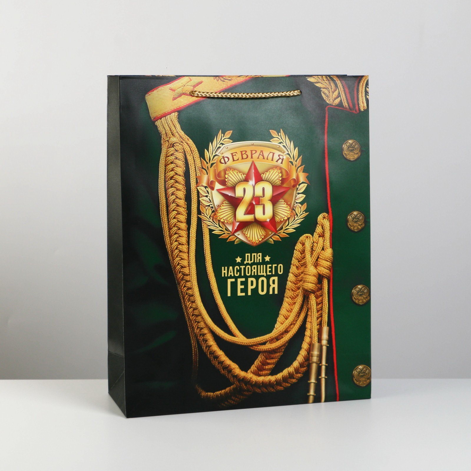 Цвет: Зелёный, Золотистый Тематика: Военная, Мужская Размер упаковки: 31 x 0.2 x 40 см. Размер упаковки: 31 x 0.2 x 40 см. tnved: 4819300000 Для кого: Для мужчины Дизайн: С рисунком, надписью Отделка пакета: Ламинация Примерный размер: XL (~ 33см - 45см) Вид ручки: Ручка-шнур Тематика праздника: 23 Февраля Особенности: Без особенностей Плотность, г/?2: 190 Форма пакета: Вертикальный Допустимый вес вложения, г: 1500 | ||