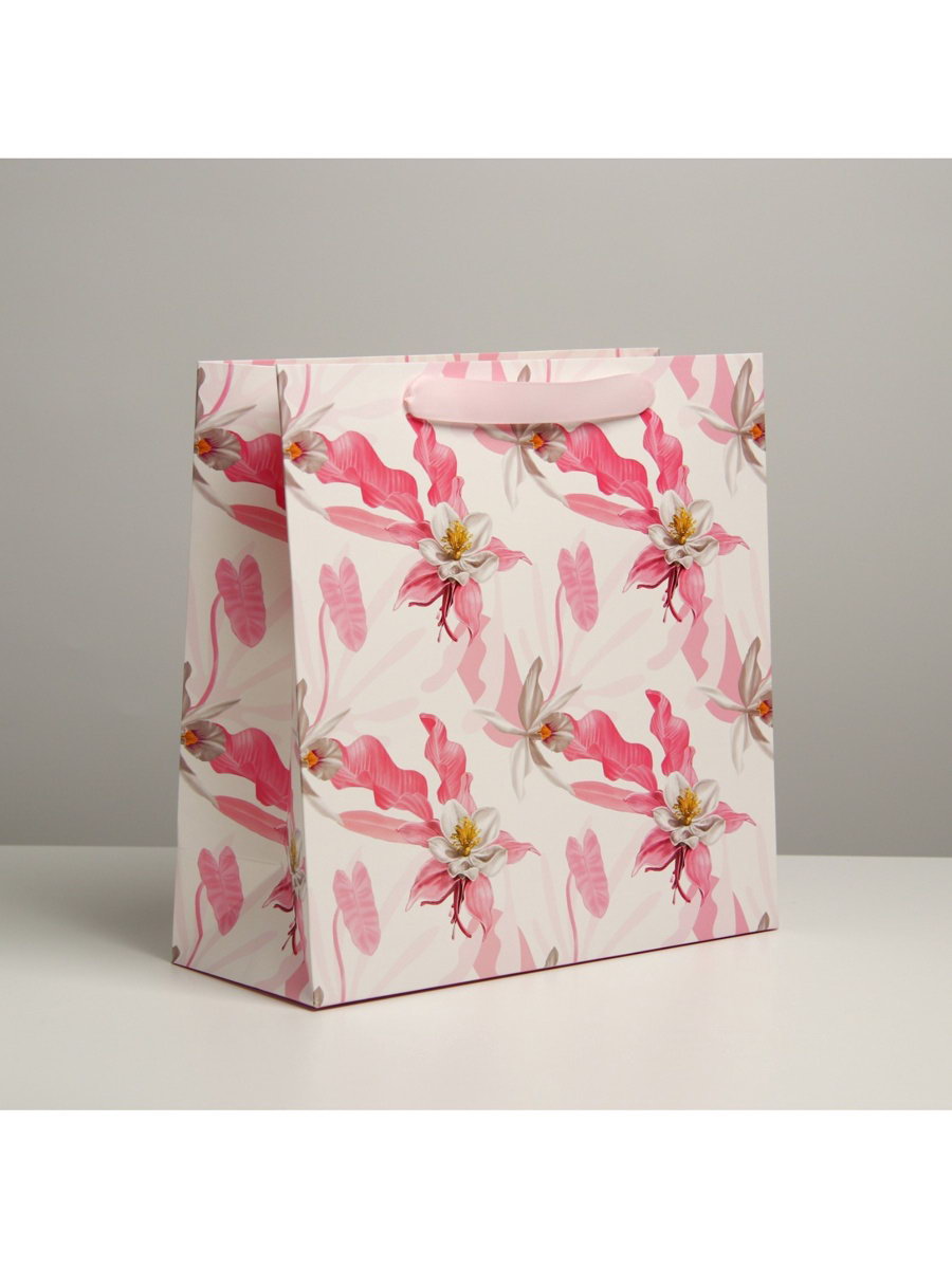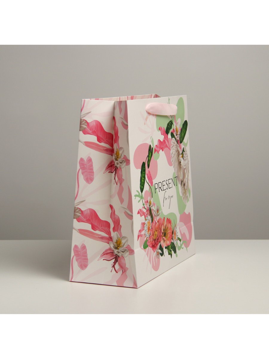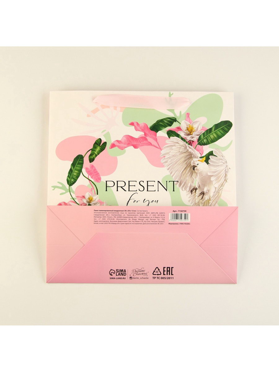 Пакет подарочный ламинированный квадратный, упаковка, "Present for you", 30 x 30 x 12 см, 12x30x30 см., Дарите Счастье, Китай