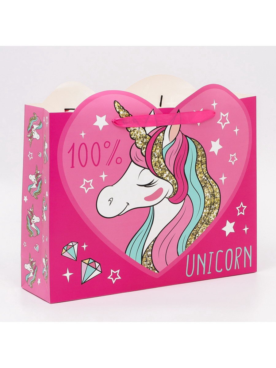 Пакет подарочный, 40x31x11.5 см, упаковка, Минни Маус и Единорог, 11.5x31x40 см., Disney, Китай