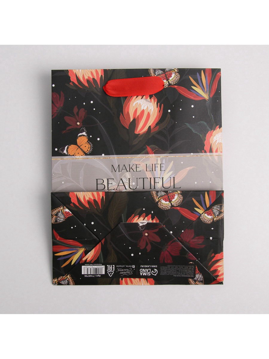 Пакет подарочный ламинированный, упаковка, "Make life", MS 18x23x10 см, 18x23x10 см., Дарите Счастье, Китай