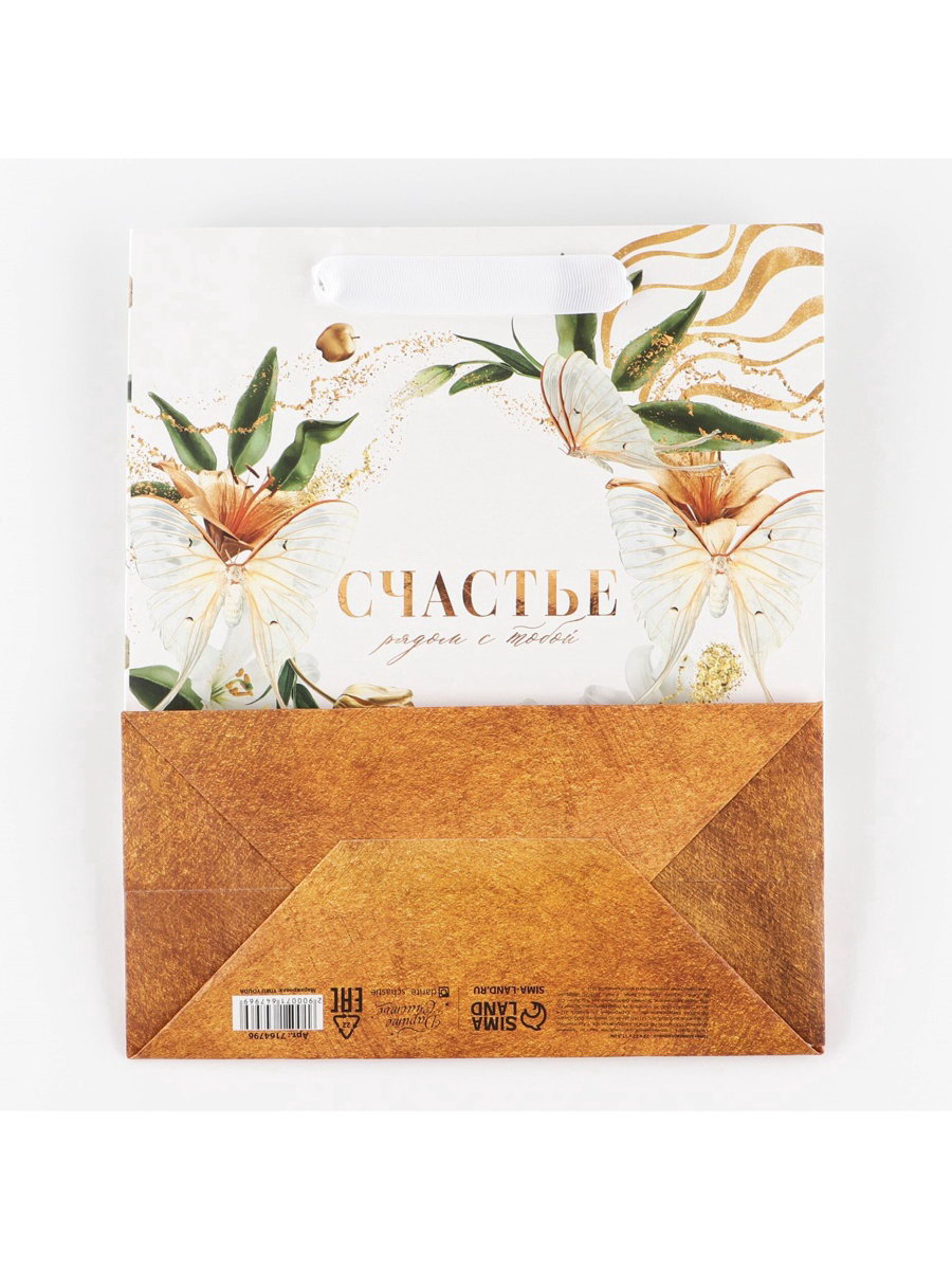 Пакет подарочный ламинированный, упаковка, "Счастье рядом", ML 23 x 27 x 11.5 см, 23x27x11.5 см., Дарите Счастье, Китай