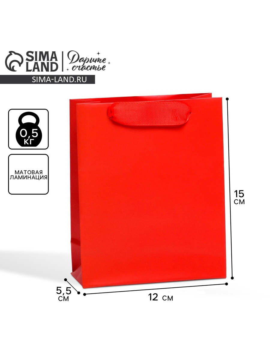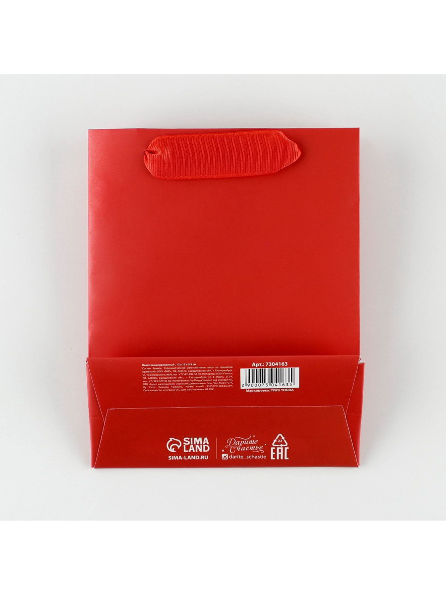 Пакет подарочный ламинированный, упаковка, "Красный", S 12 x 15 x 5.5 см, 12x12x5.5 см., Дарите Счастье, Китай
