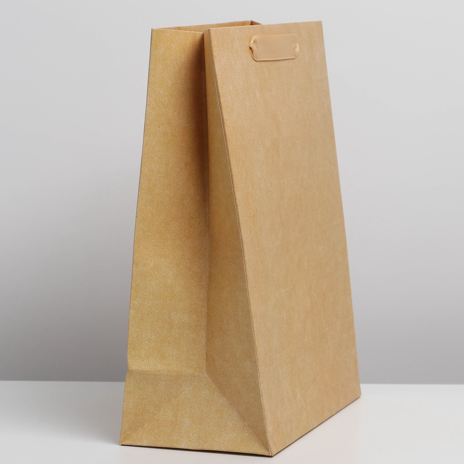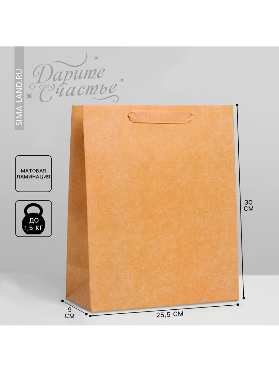 Пакет подарочный ламинированный, упаковка, "Крафтовый", M 25.5x30x9 см, 26x32x12 см., Дарите Счастье, Китай
