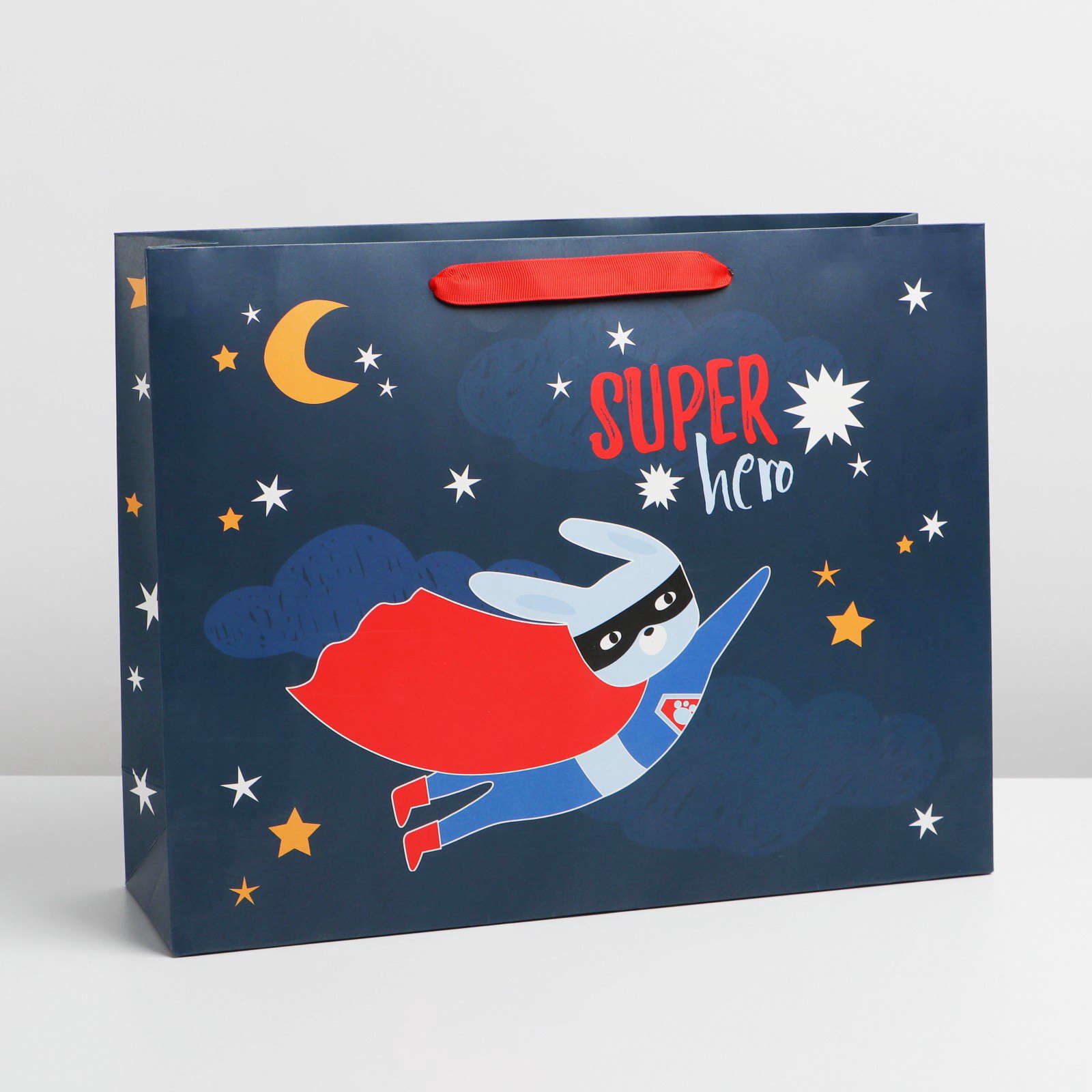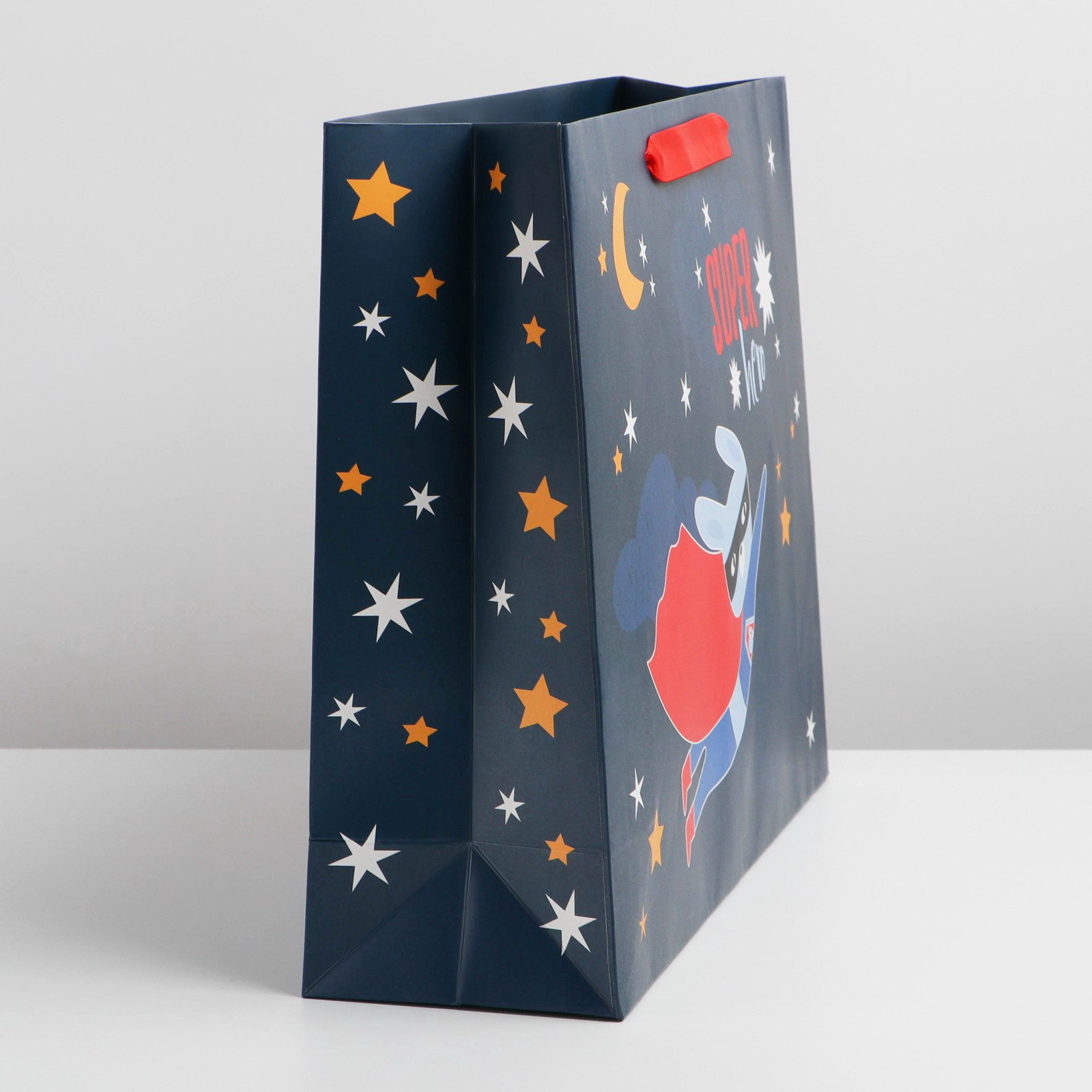 Пакет подарочный ламинированный, упаковка, "Super", L 40x31x11.5 см, 40x31x11.5 см., Дарите Счастье, Китай