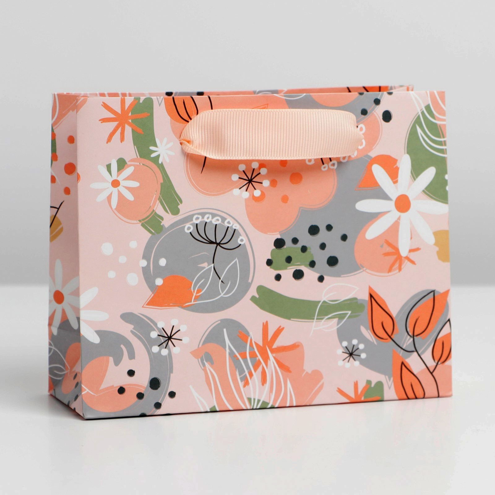 Пакет ламинированный горизонтальный "Цветочная поляна", S 12 x 15 x 5.5 см, 12x15x5.5 см., Дарите Счастье, Китай