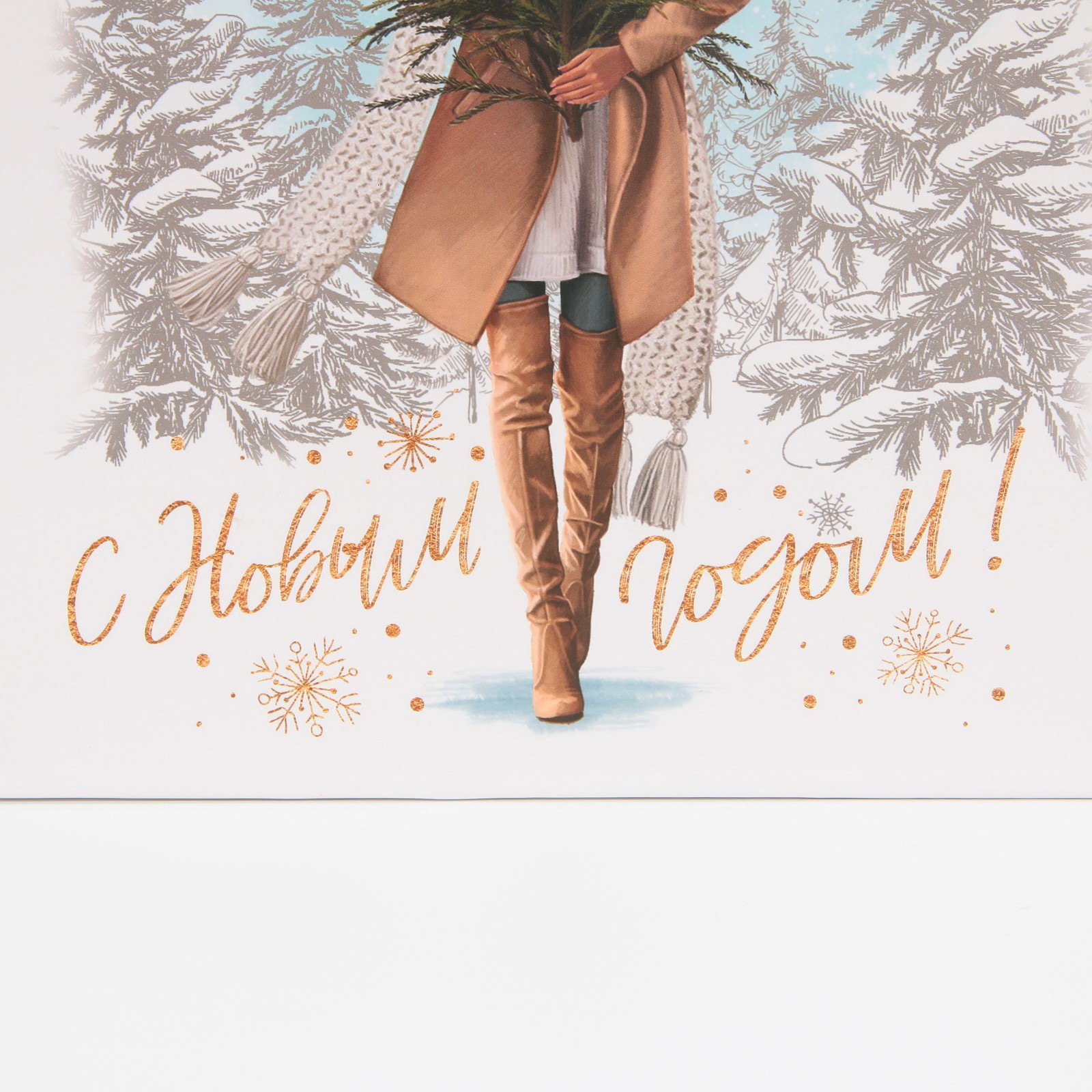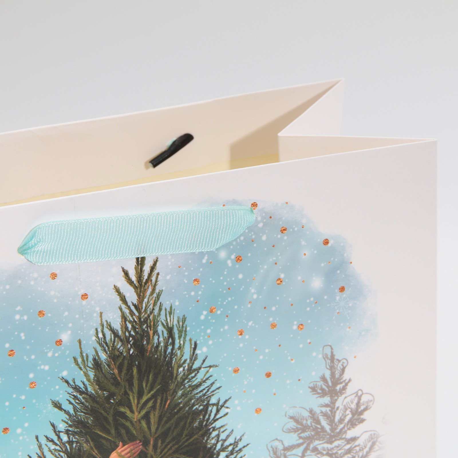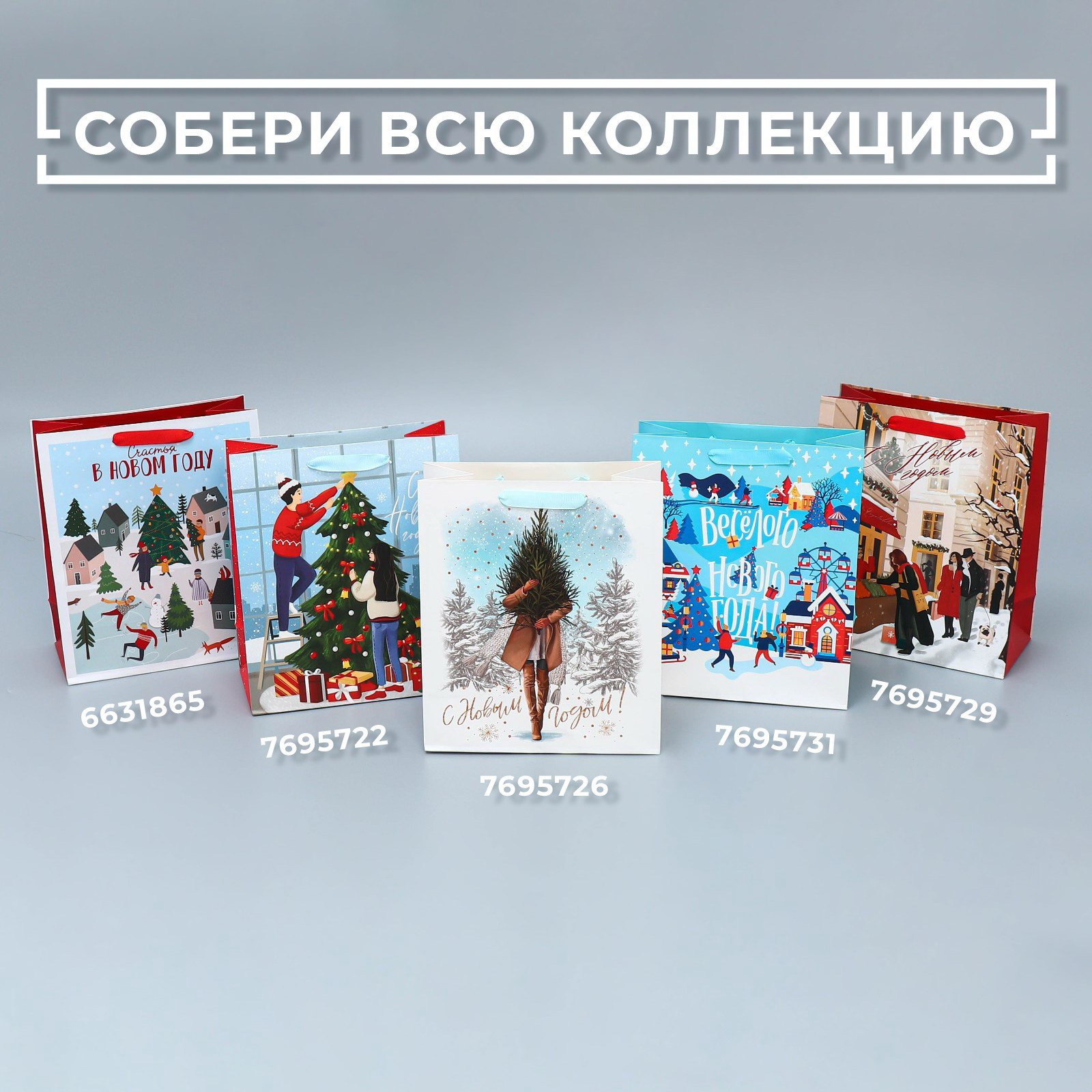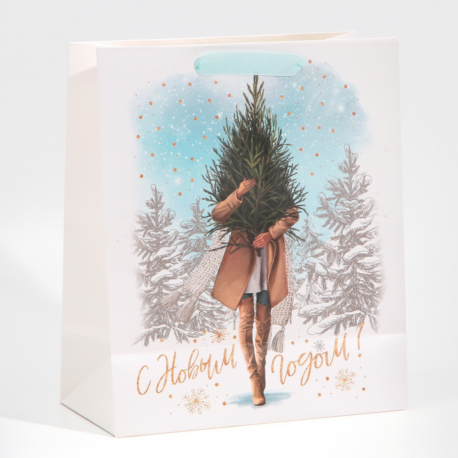 Пакет подарочный новогодний ламинированный "Девушка с ёлкой", ML 23x27x11.5 см, 27x23x11.5 см., Дарите Счастье, Китай