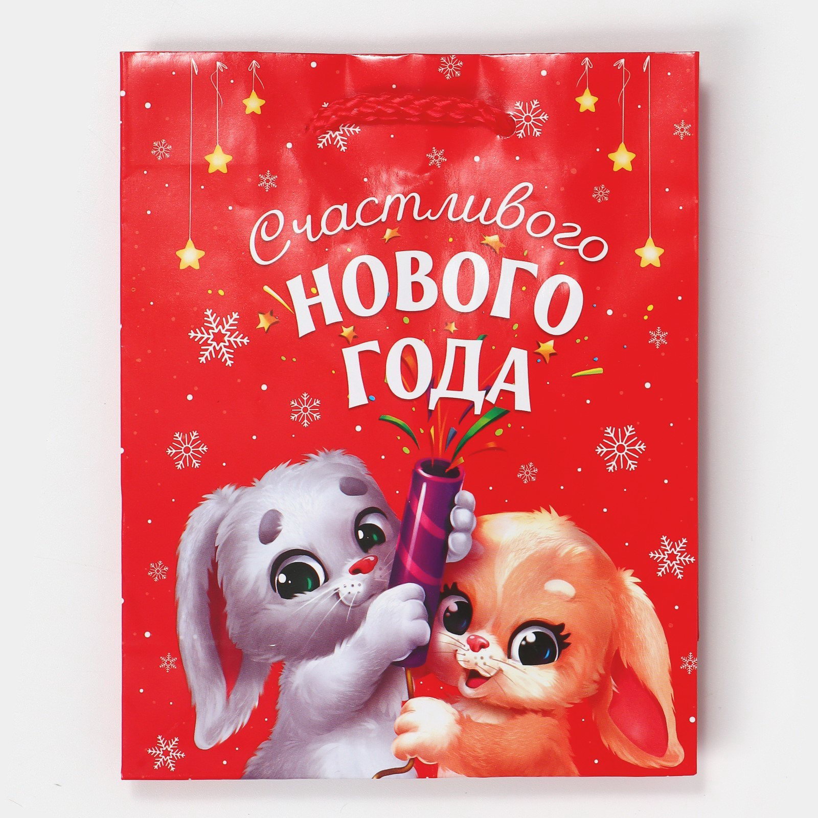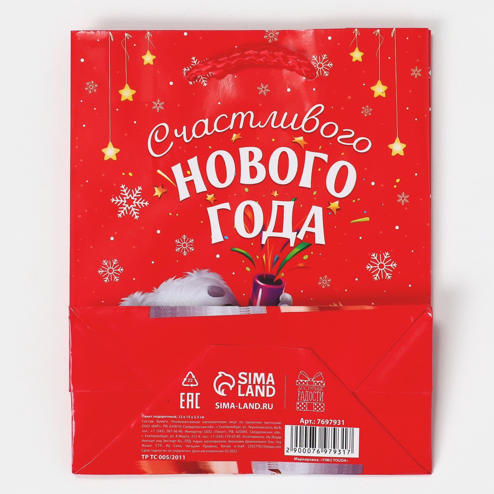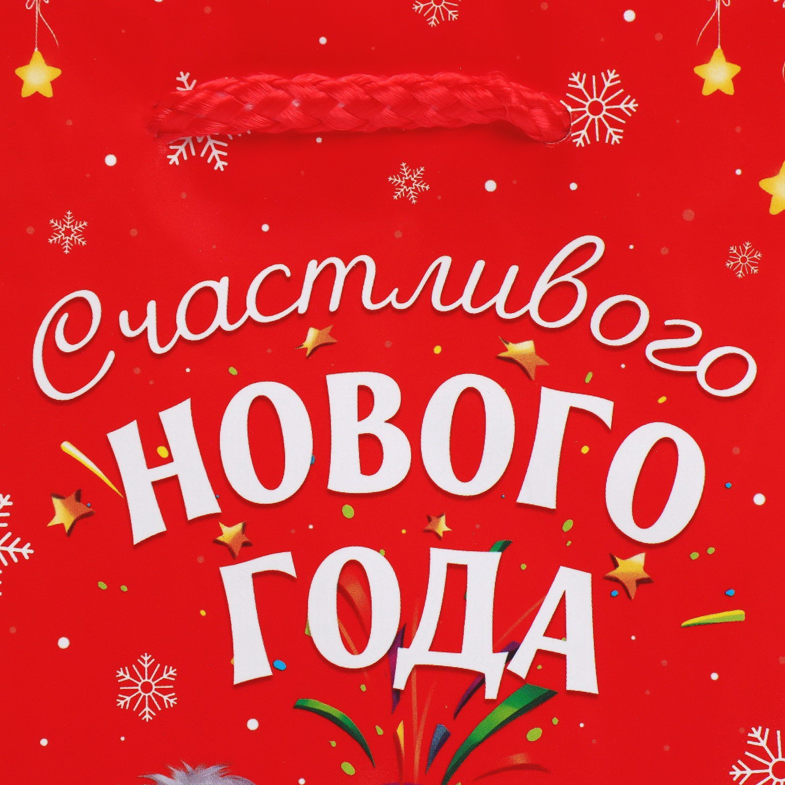 Пакет подарочный новогодний ламинированный "Счастье", S 12x15x5.5 см, 12x15x5.5 см., Доступные Радости, Китай