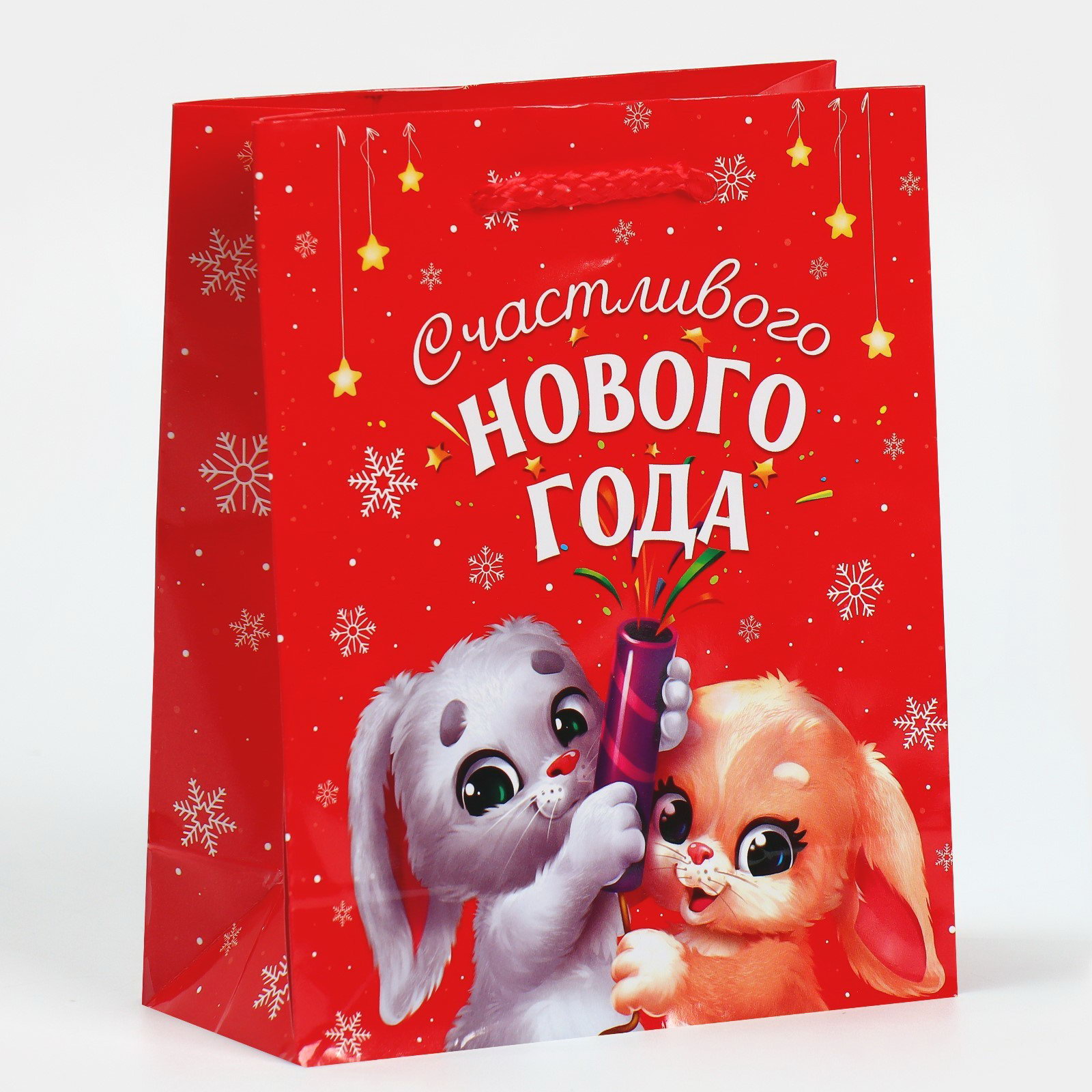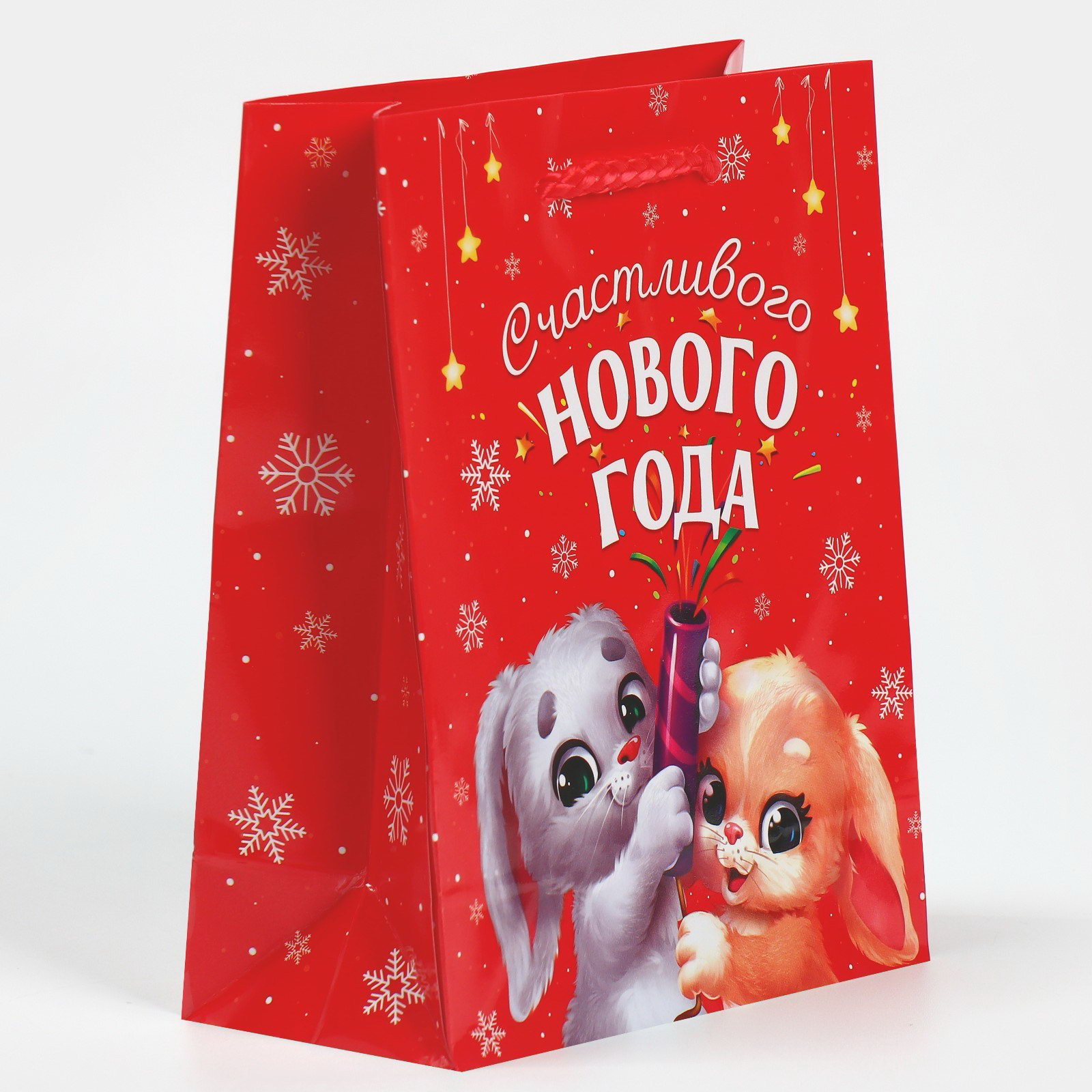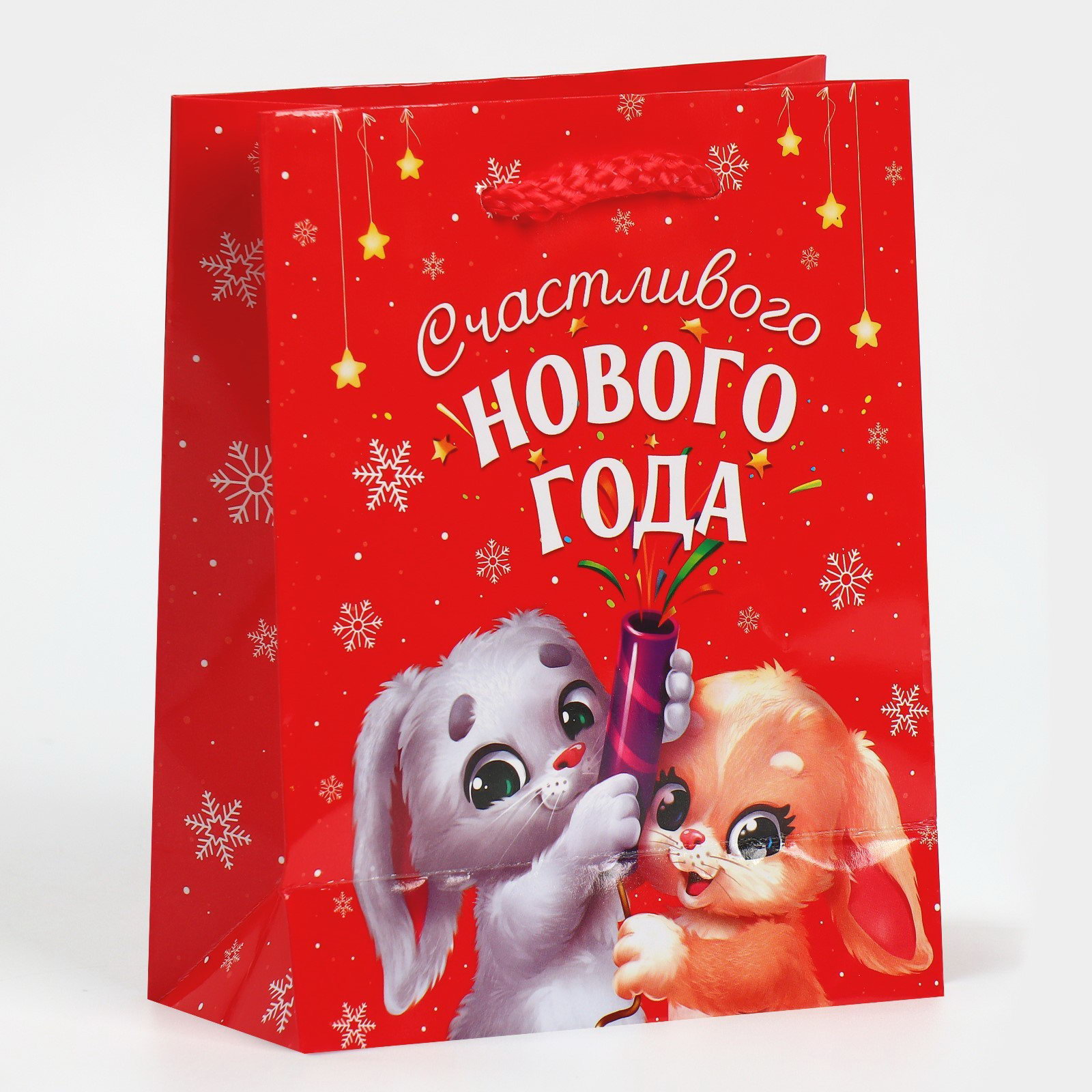 Пакет подарочный новогодний ламинированный "Счастье", S 12x15x5.5 см, 12x15x5.5 см., Доступные Радости, Китай