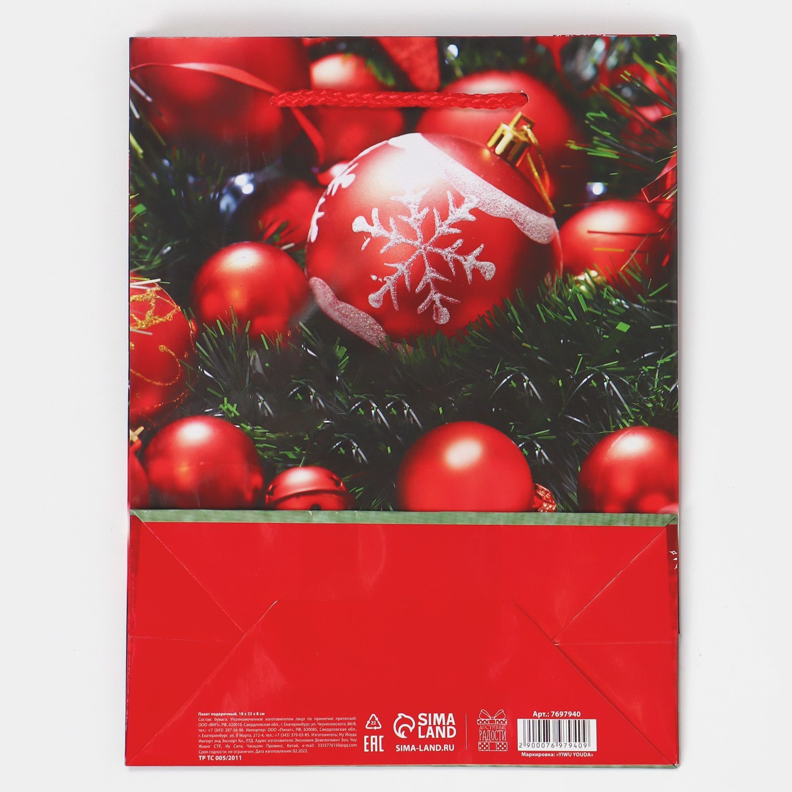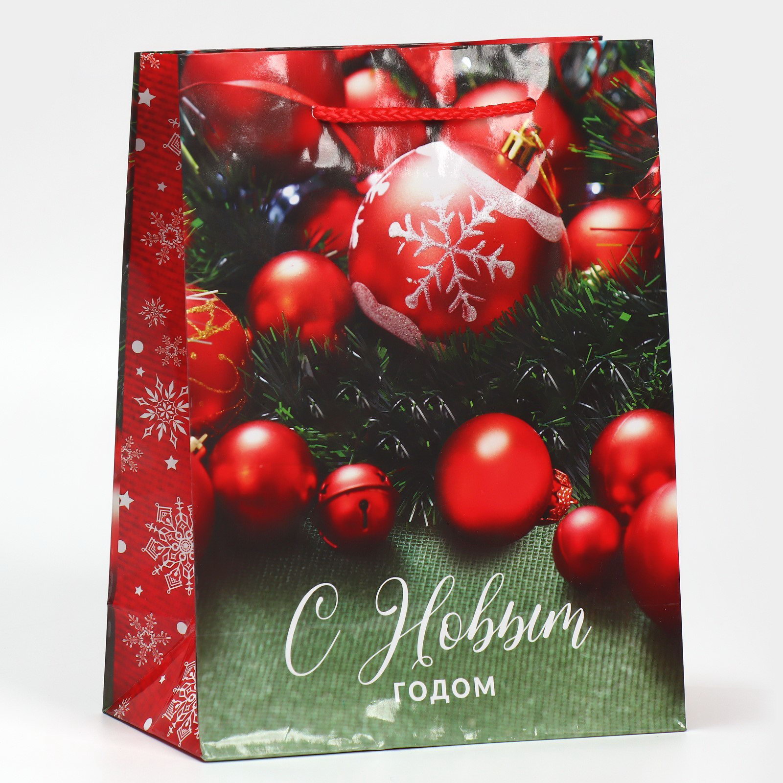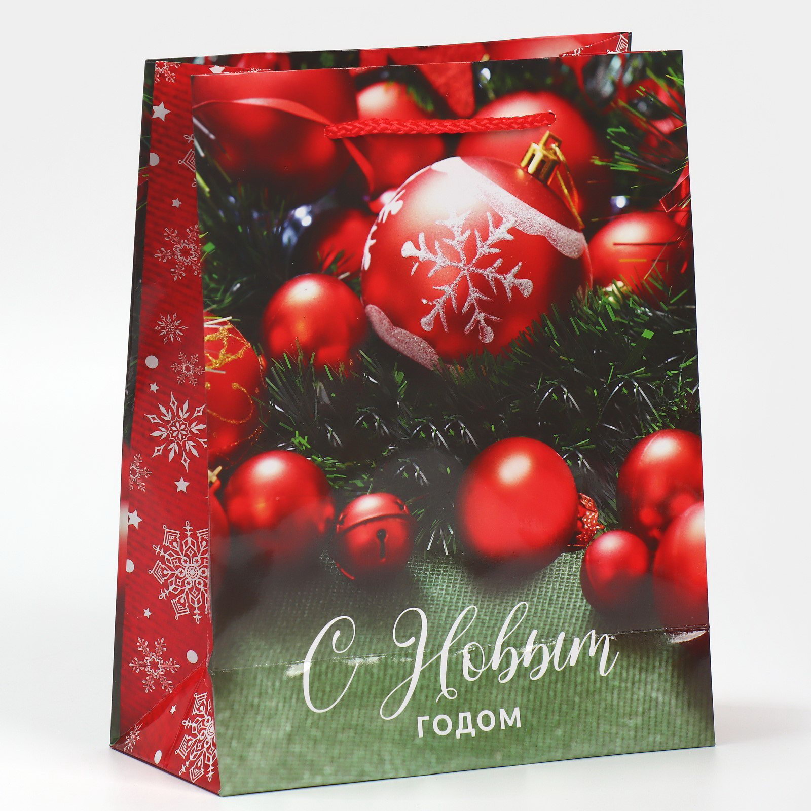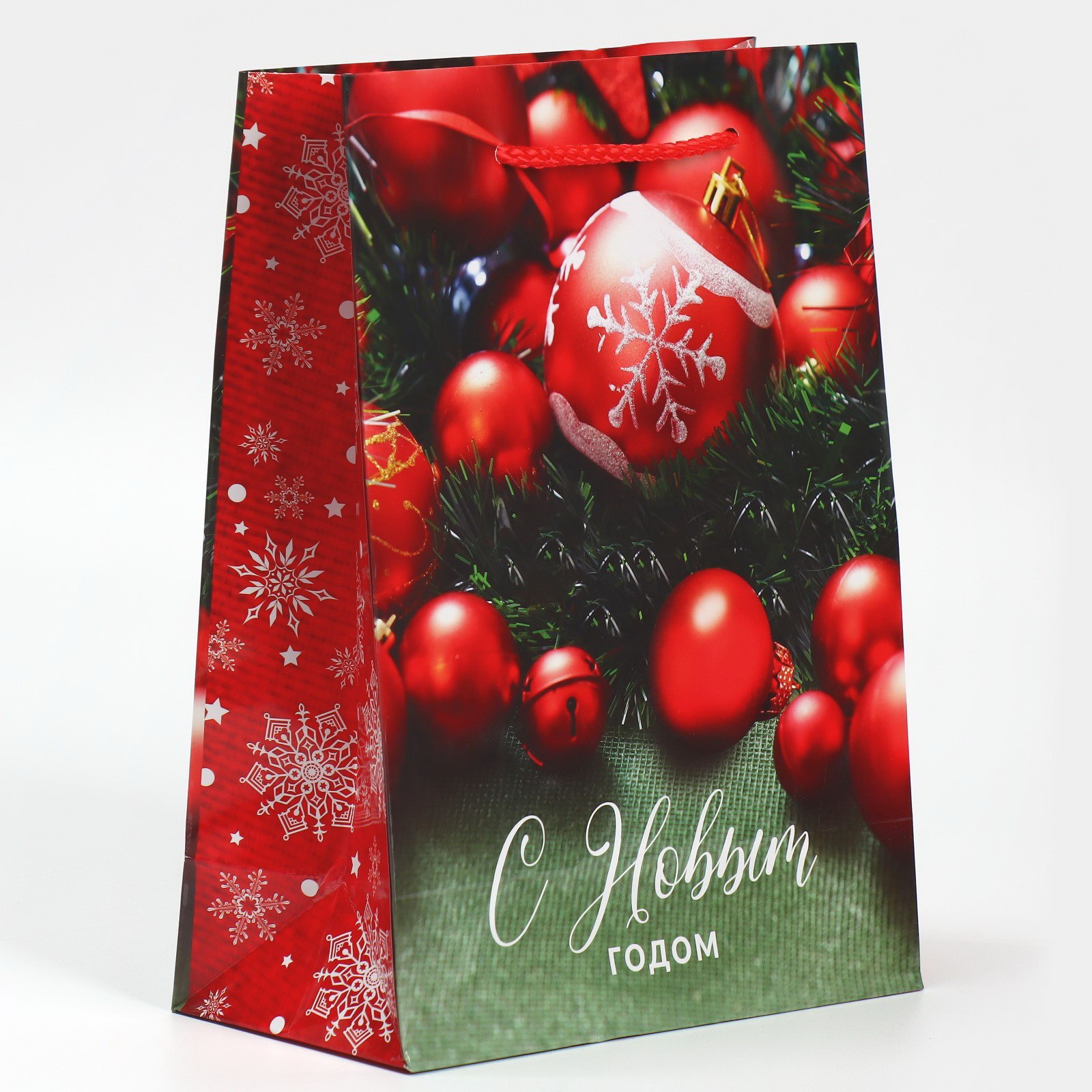 Пакет подарочный новогодний ламинированный "Ёлочные игрушки", MS 18 x 23 x 8 см, 23x18x8 см., Доступные Радости, Китай