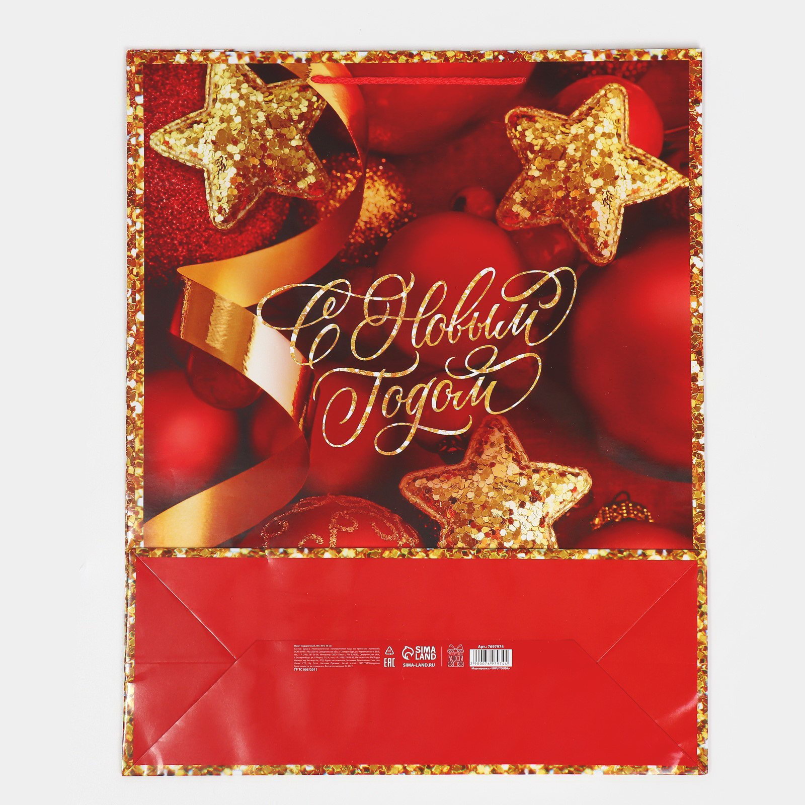 Пакет подарочный новогодний ламинированный XL "Новогодние звезды", 40 x 49 x 15 см, 49x40x15 см., Доступные Радости, Китай