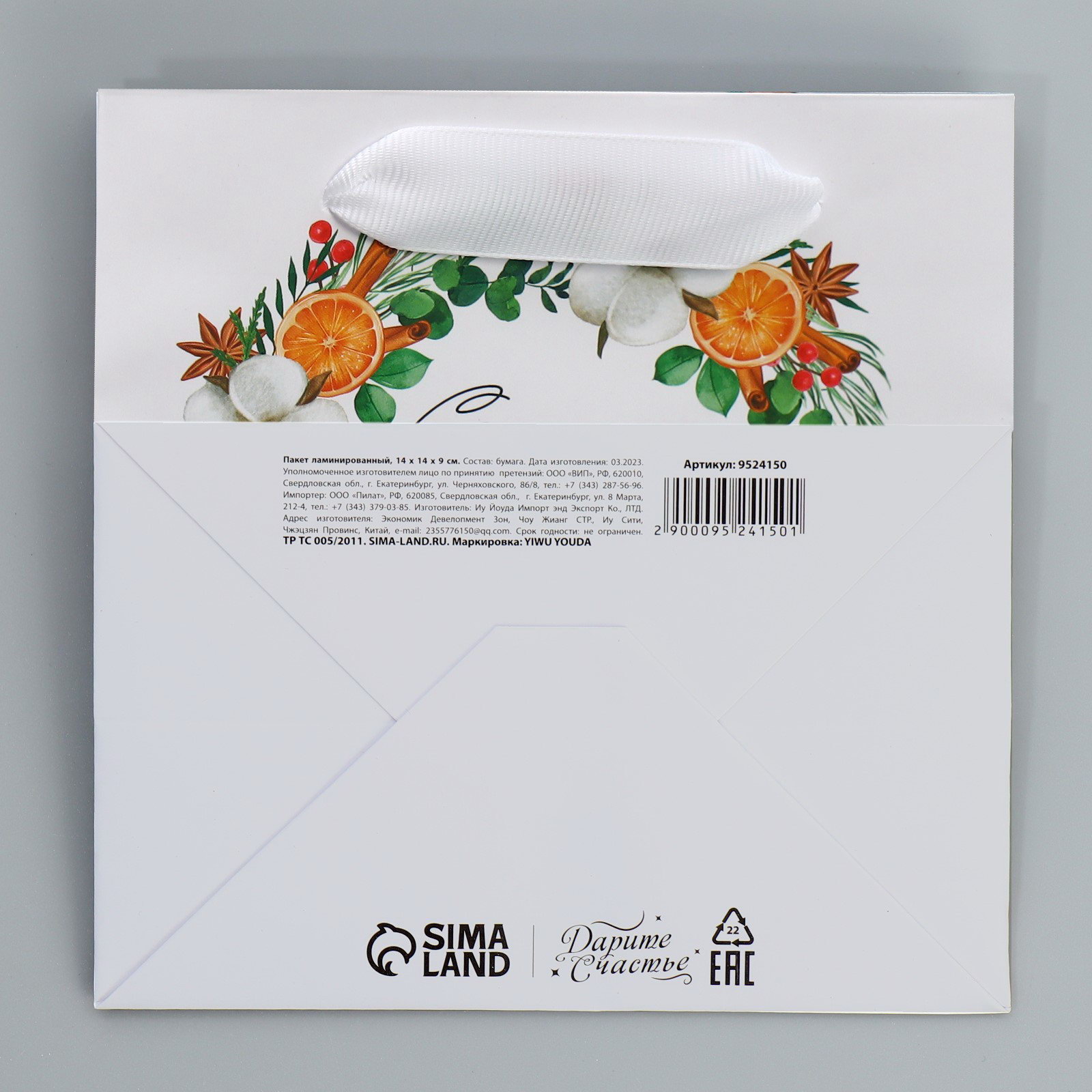 Пакет подарочный новогодний ламинированный квадратный "Счастье", 14x14x9 см, 14x14x9 см., Дарите Счастье, Китай