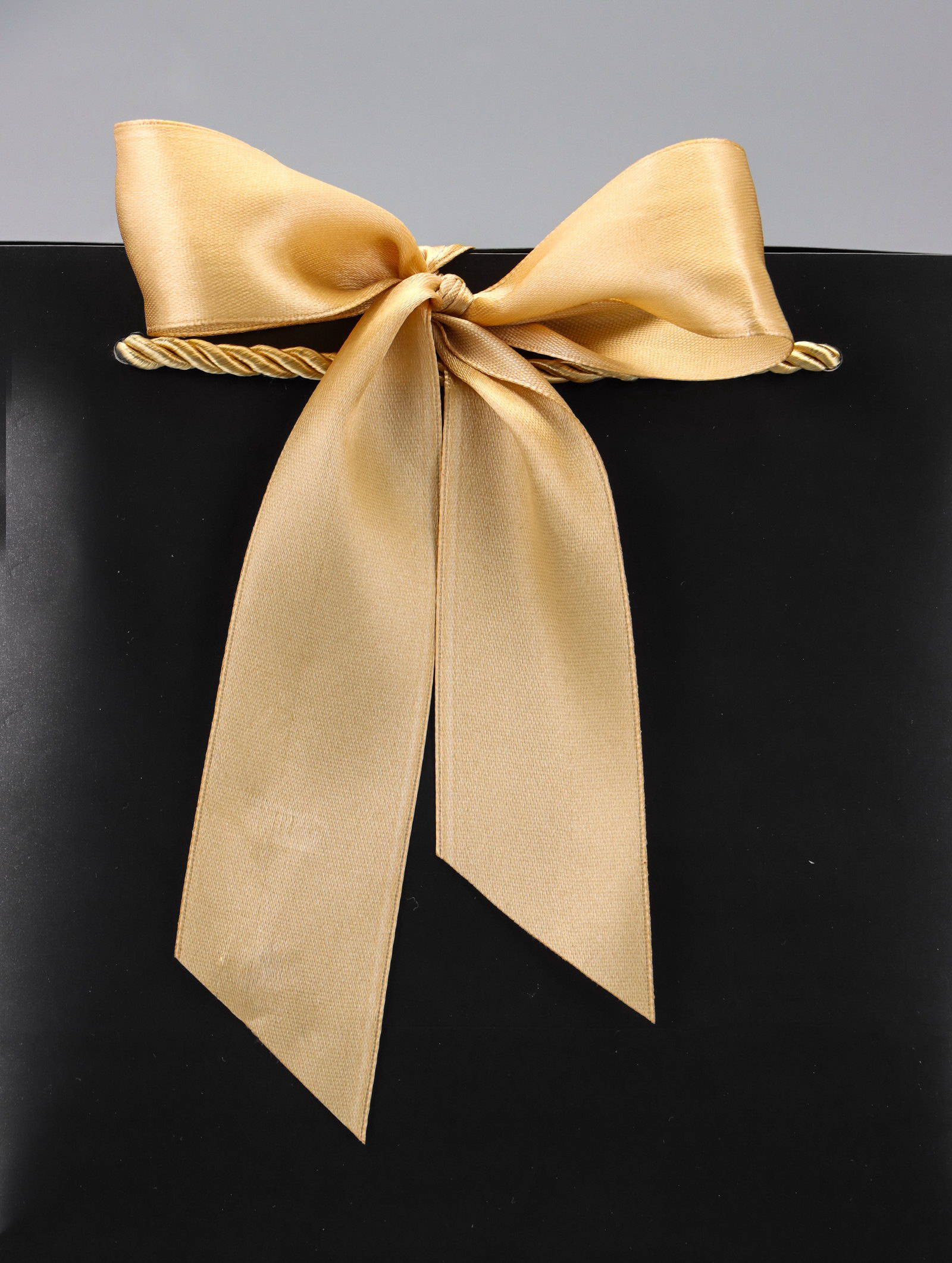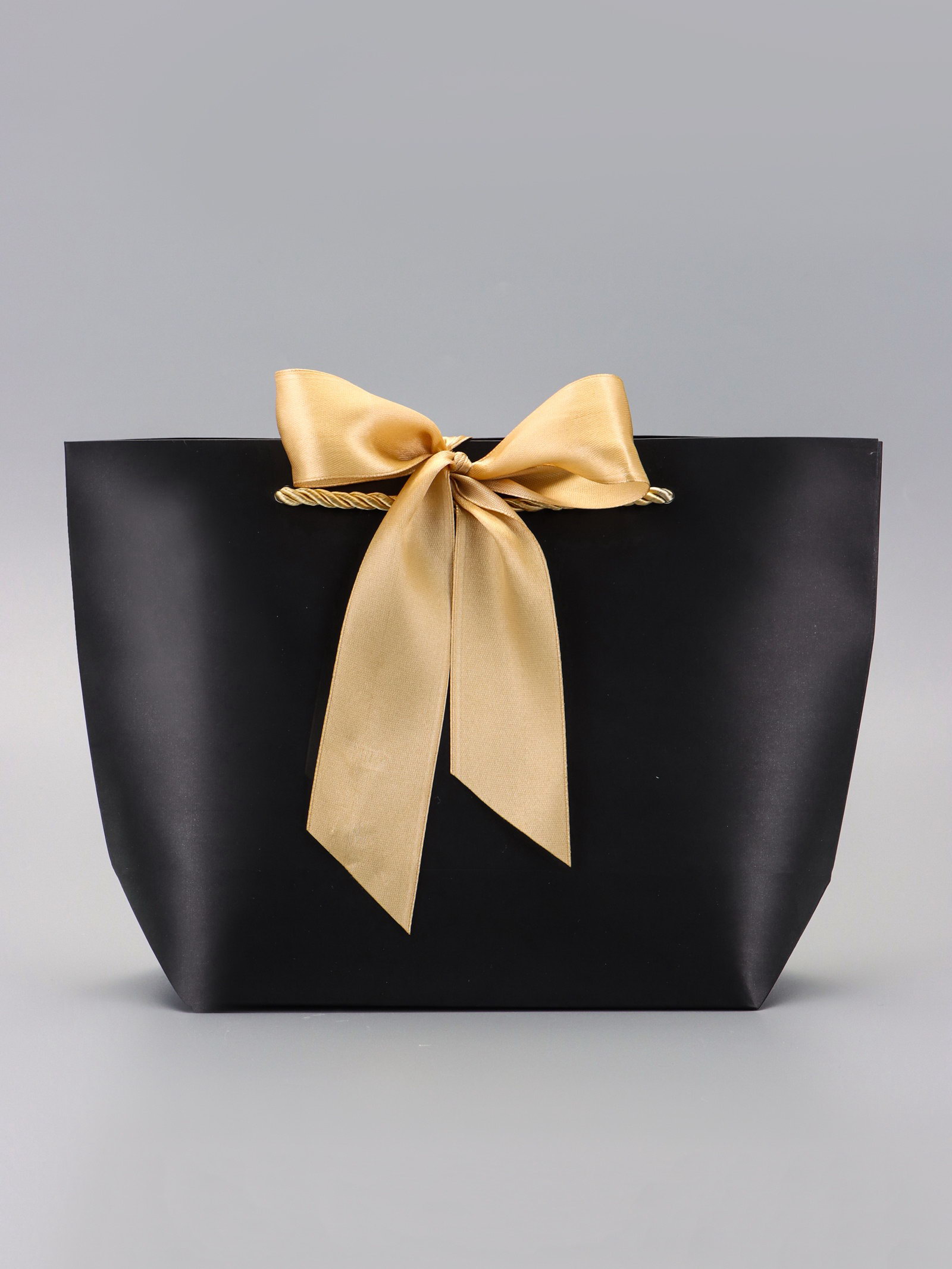 Пакет подарочный ламинированный, с лентой "Чёрный", горизонтальный 19x20x9 см, 20x28x9 см., UPAK LAND, Китай