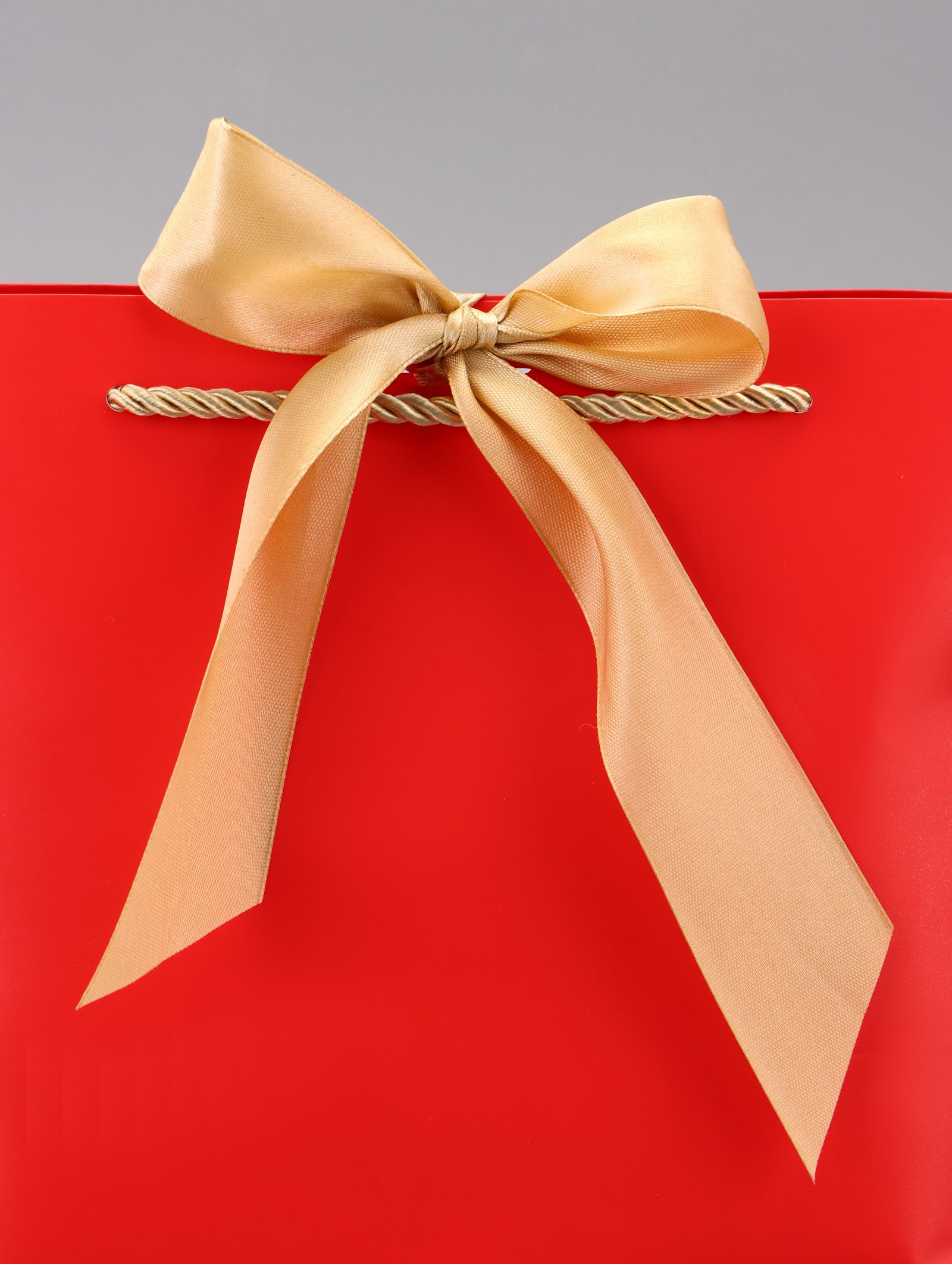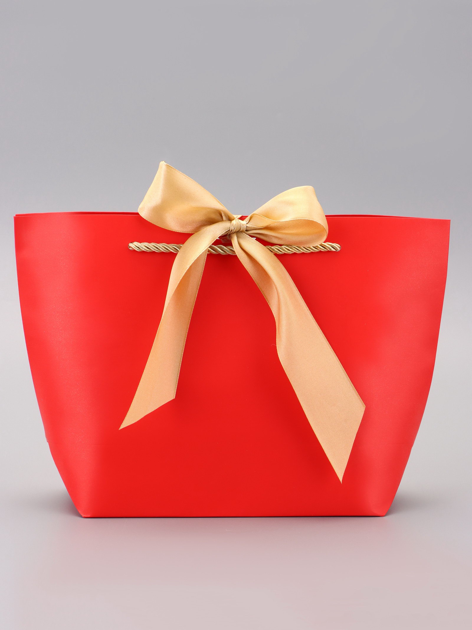 Пакет подарочный ламинированный, с лентой "Красный", горизонтальный, 19x20x9 см, 20x28x9 см., UPAK LAND, Китай